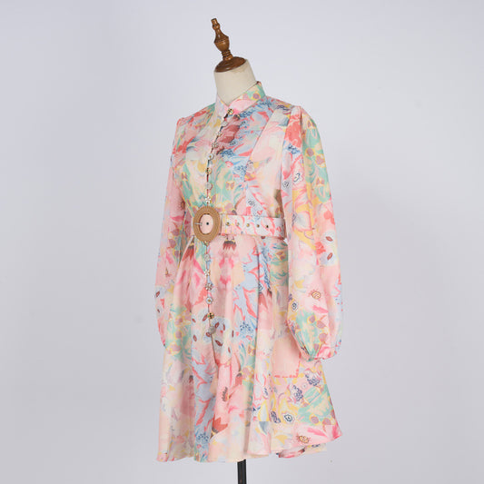 Autumn Half-sleeve Printed Loose And Elegant Shirt Dress