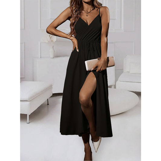 Sexy V-neck Pleated Slim Fit Slimming Graceful And Fashionable Dress