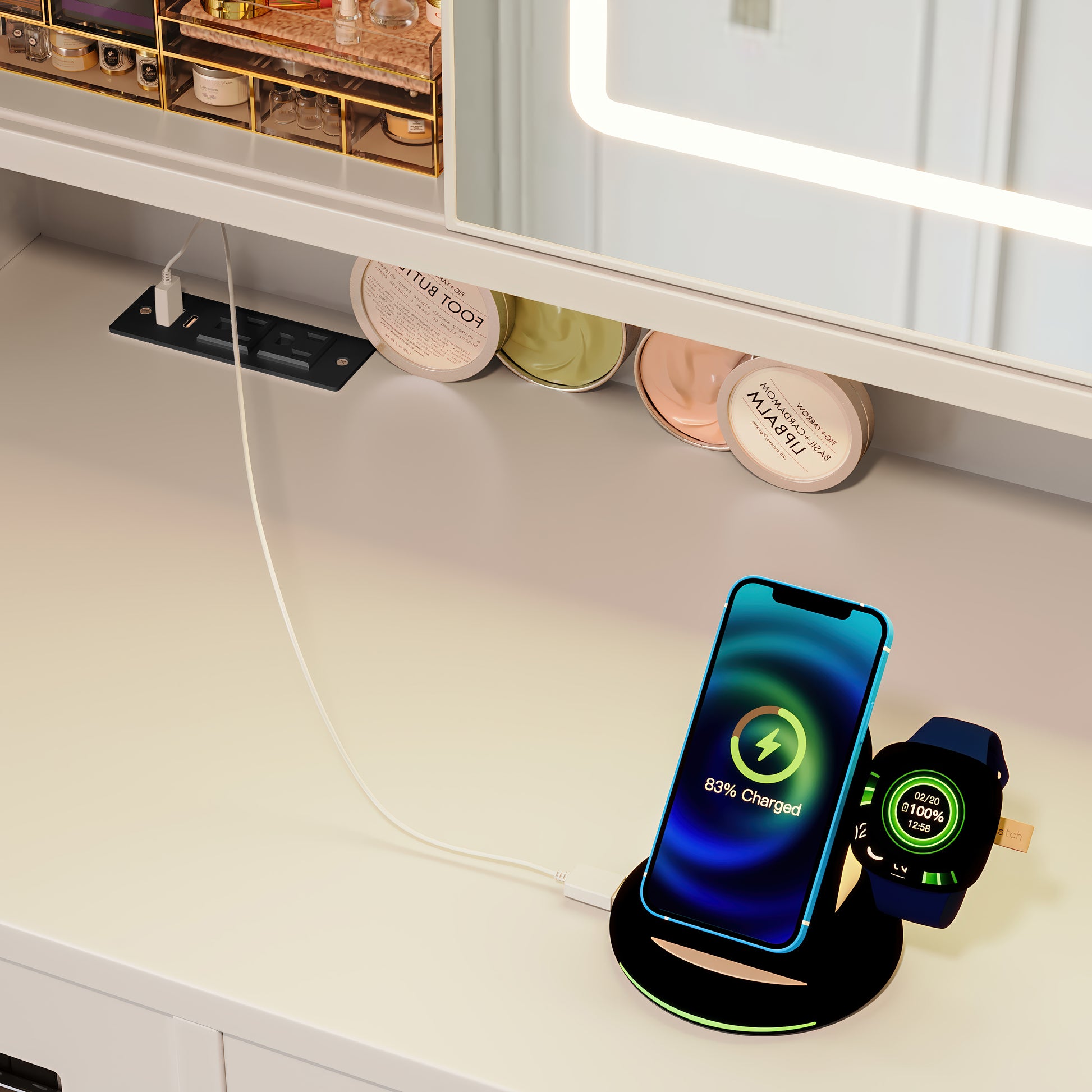 - Storage Stool: Enjoy comfort and functionality with the included cushioned stool, which opens to reveal hidden storage for small items like hair accessories or chargers. A cozy and practical addition to your beauty routine.