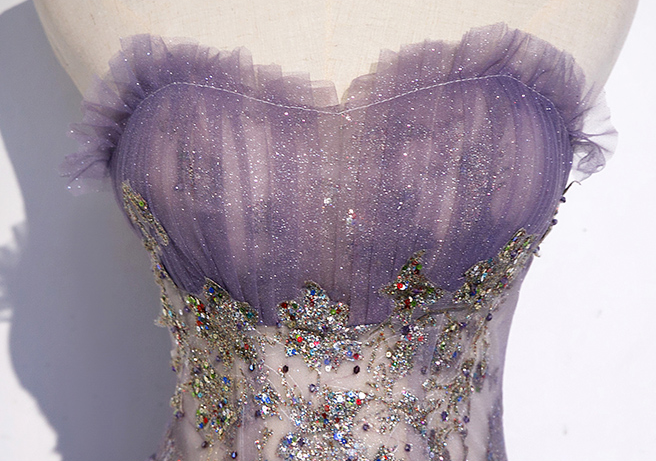 A Long Skirt With Breasts And A Purple Tailed Colored Yarn