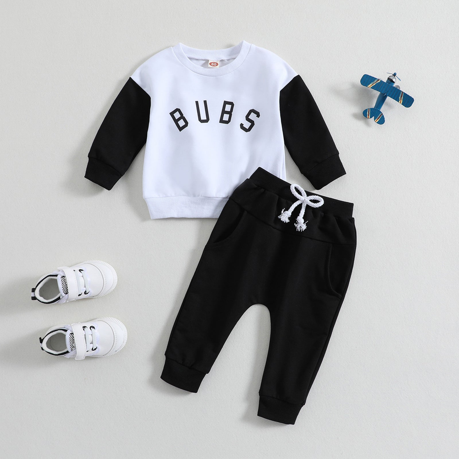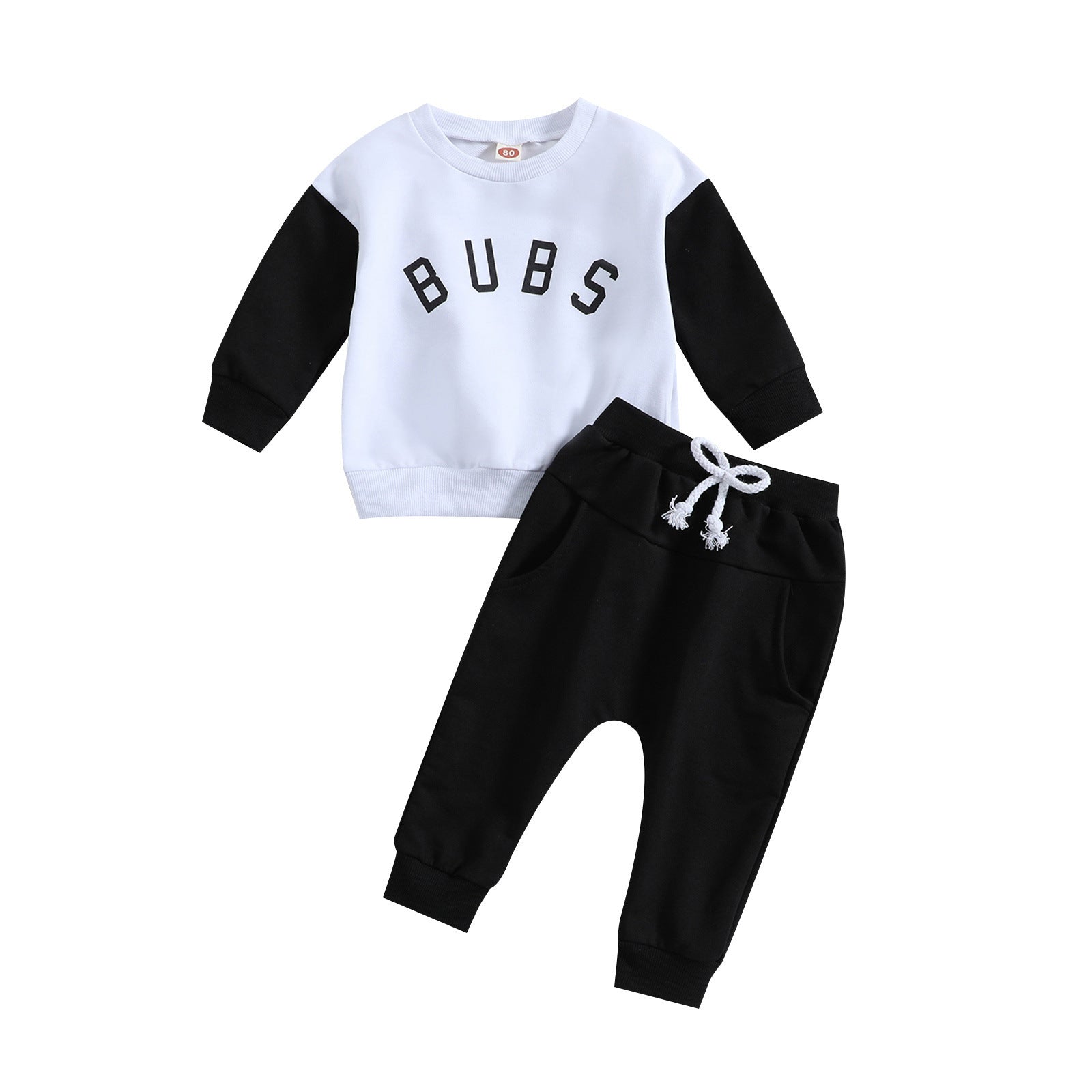Alphabet Printed Long Sleeved Sweater Solid Color Trousers Two-piece Set