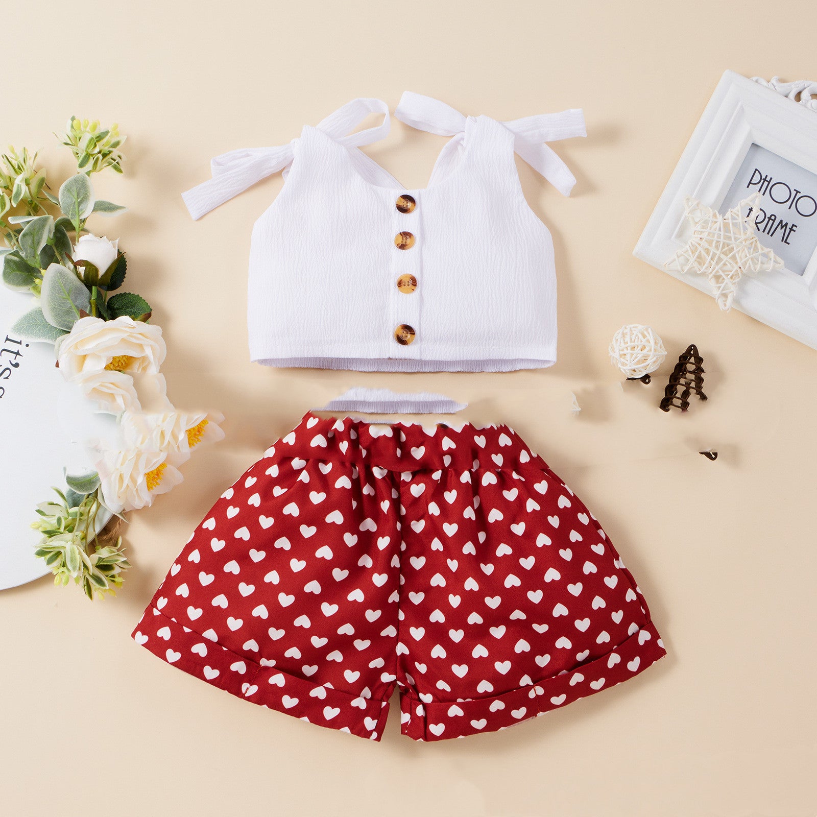 Amazon Hot Style Solid Color Top Love Shorts Two-Piece Suit