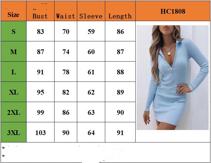 Autumn Fashion Polo Collar Zipper High Waist Long Sleeves Bottoming Dress