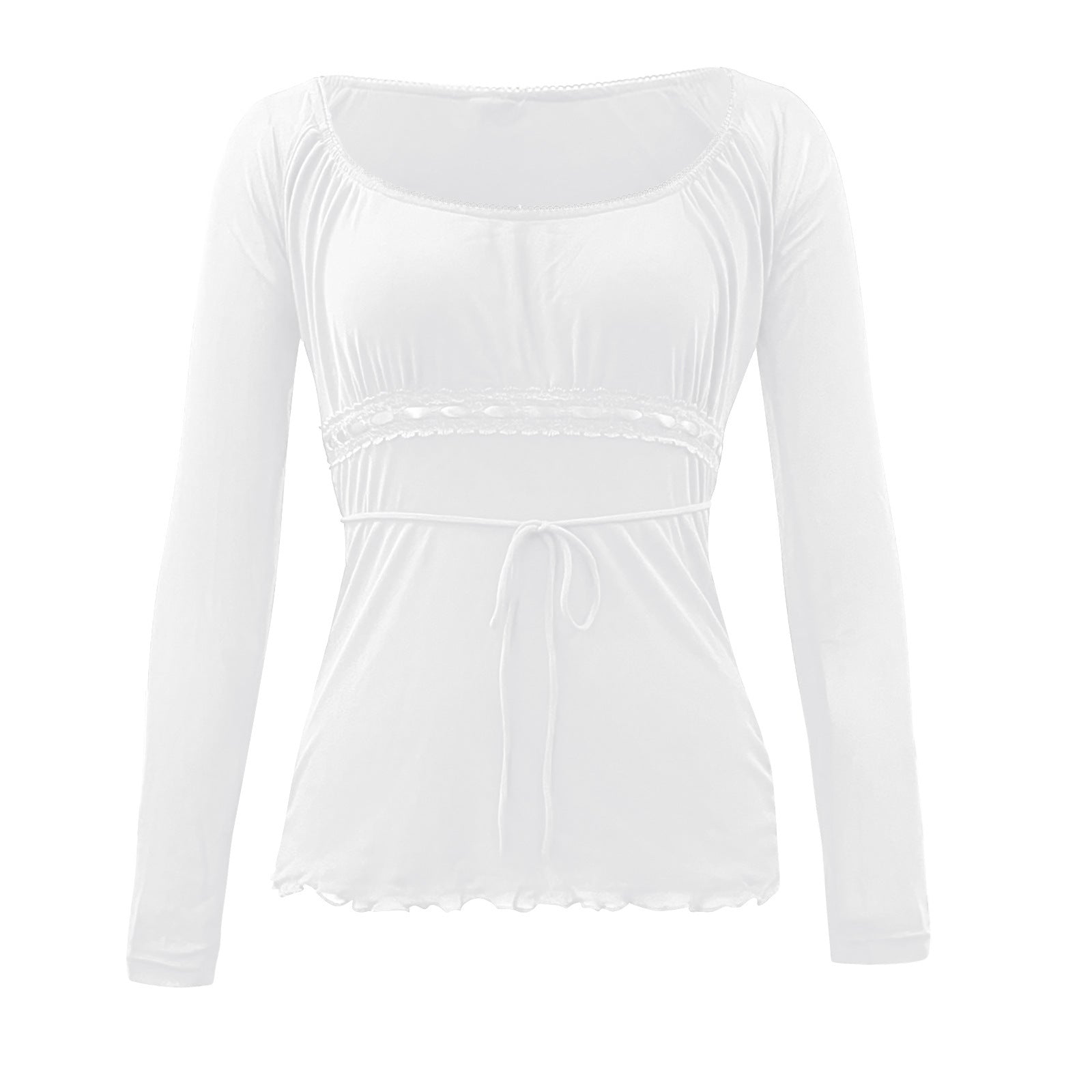 Autumn Mesh Lace Pullover Bow Waist Long Sleeve Top
