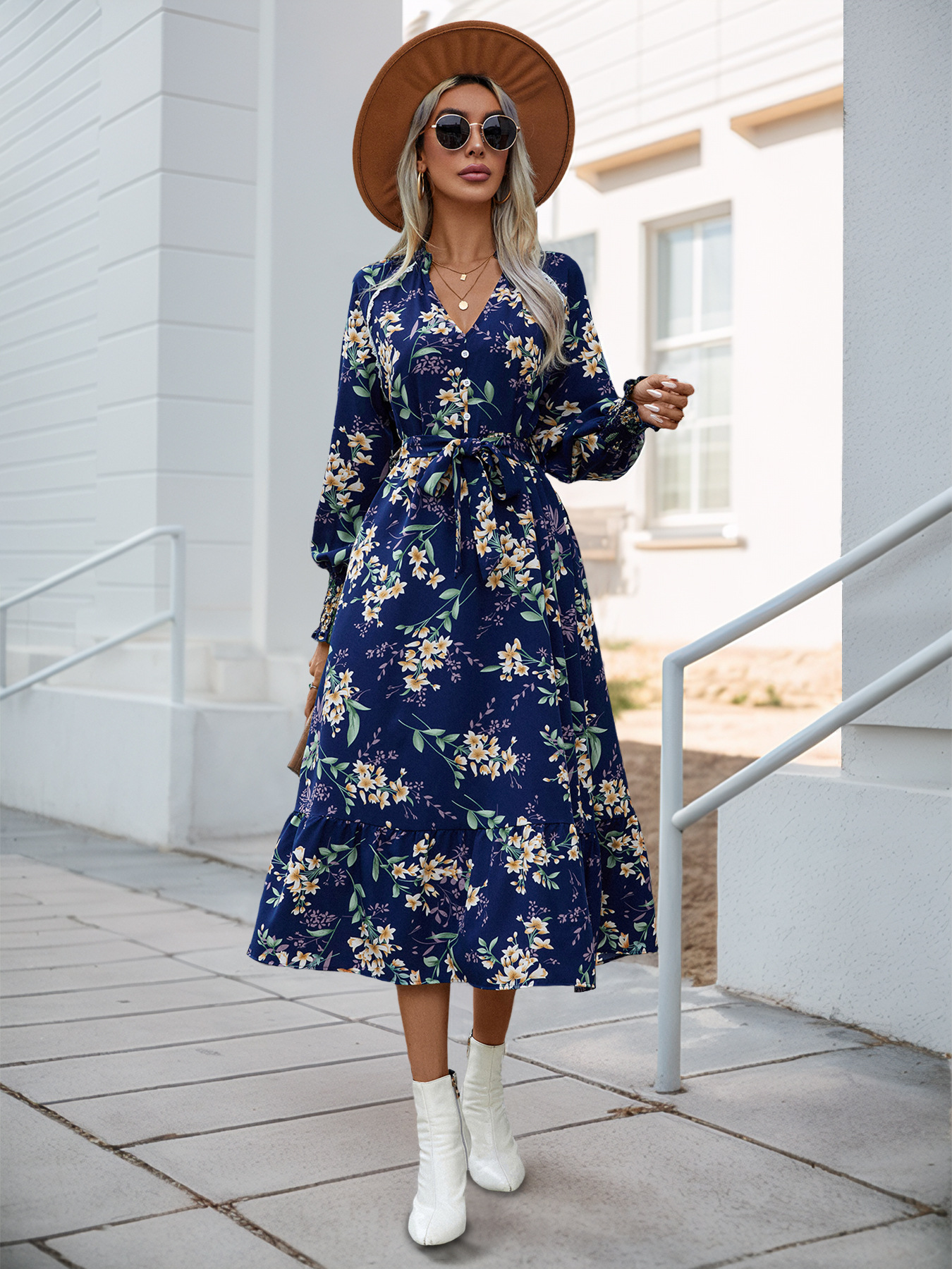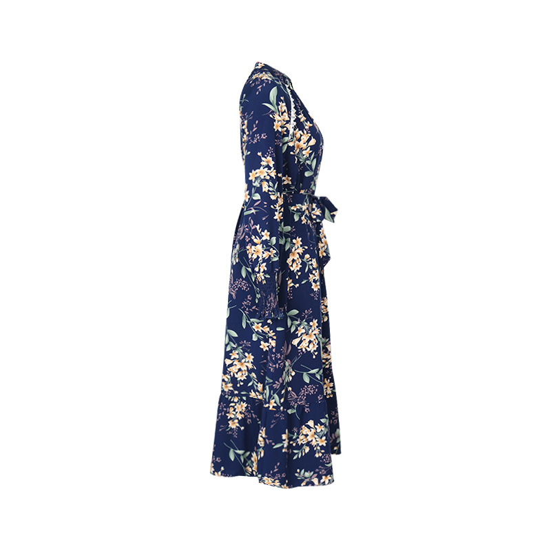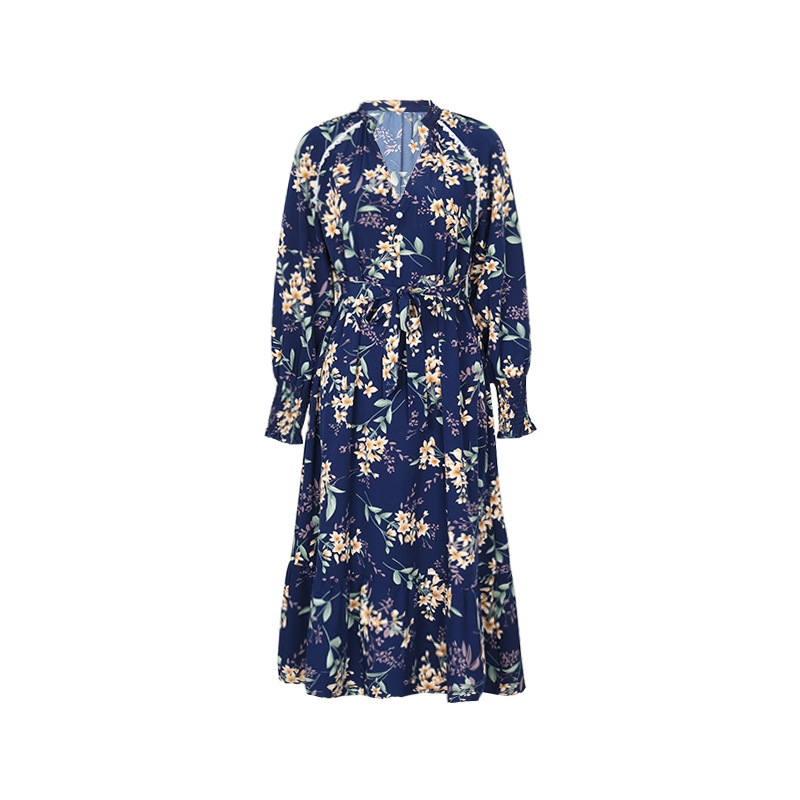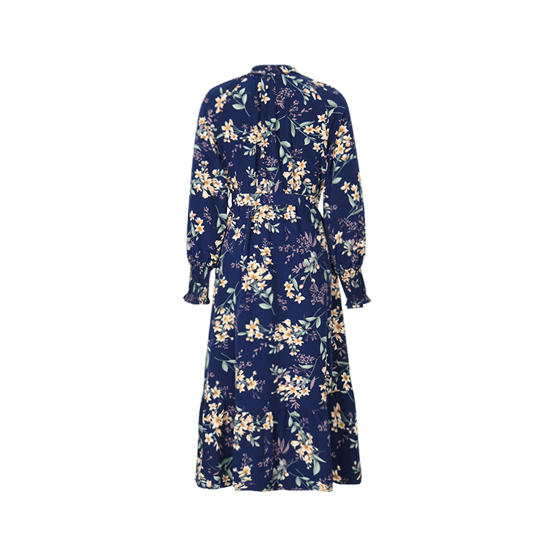 Autumn New European And American Women's Clothing Cross-border Long Sleeve Flower Print Dress