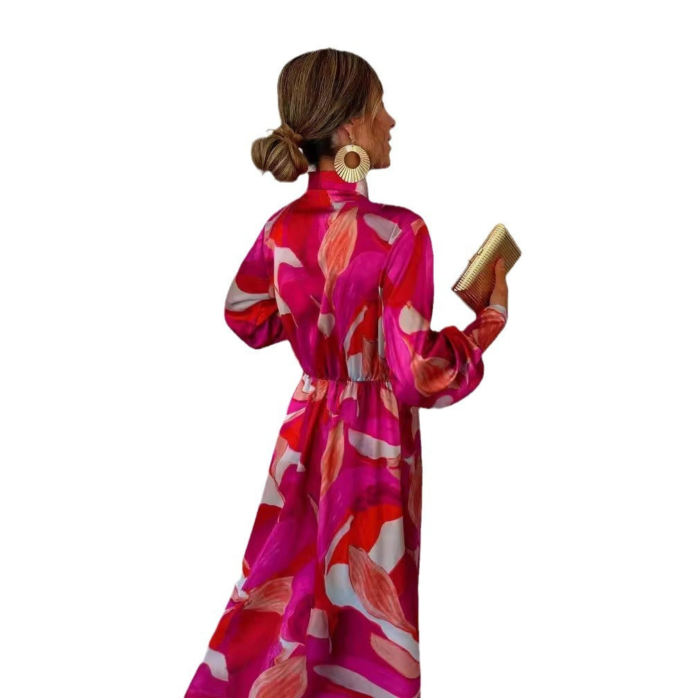 Autumn New Long Sleeve Dress V-neck Lace-up Split