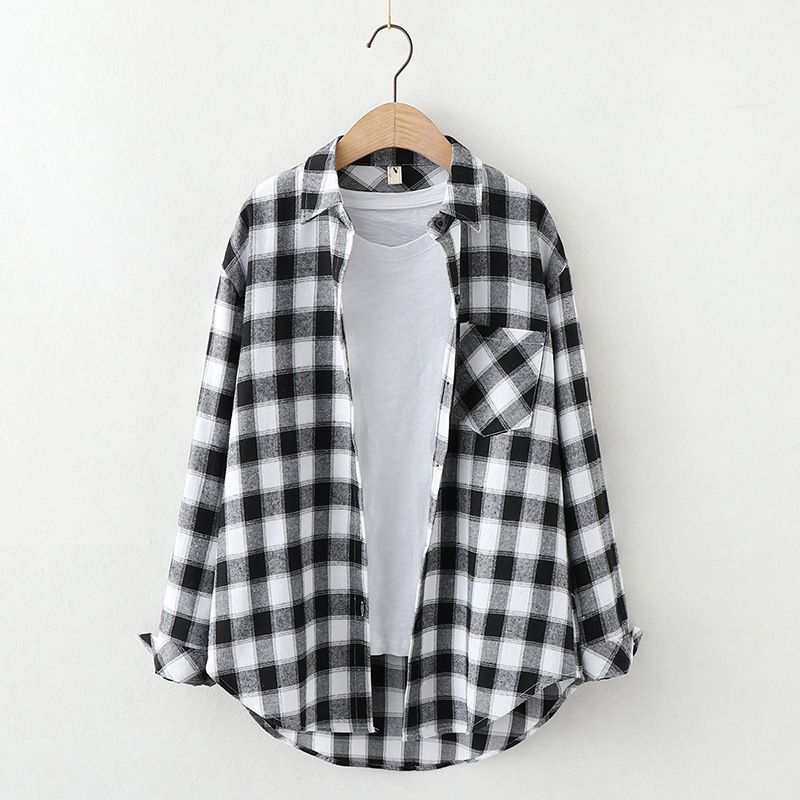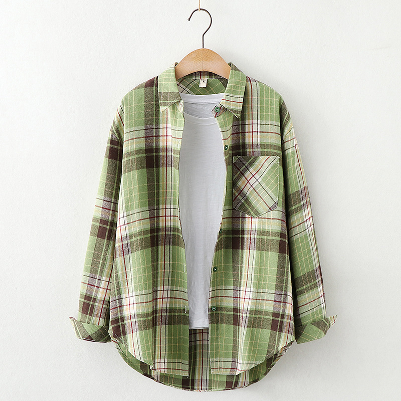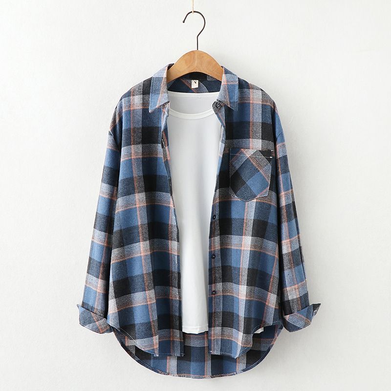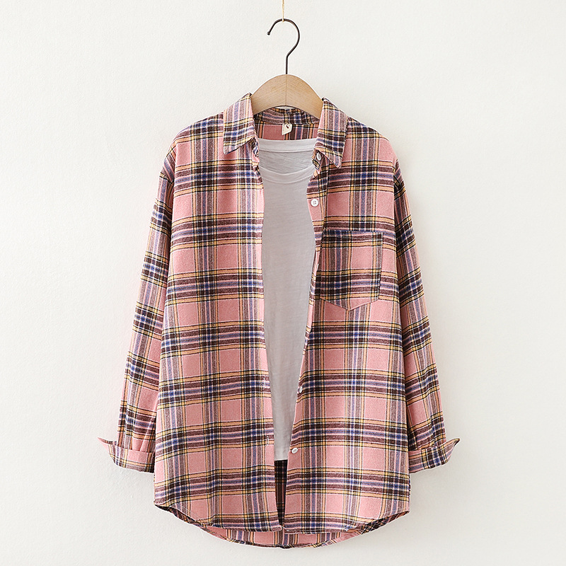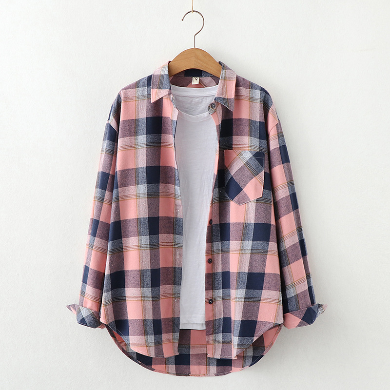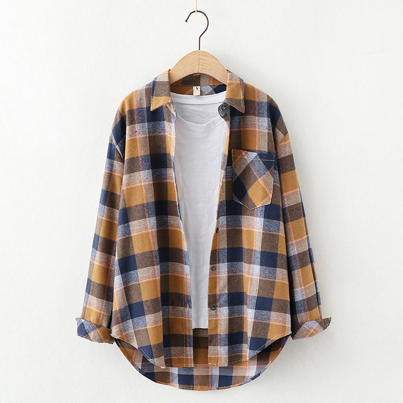 Autumn New Style Ten-Color Plaid Shirt Women'S Long-Sleeved Loose Shirt Jacket