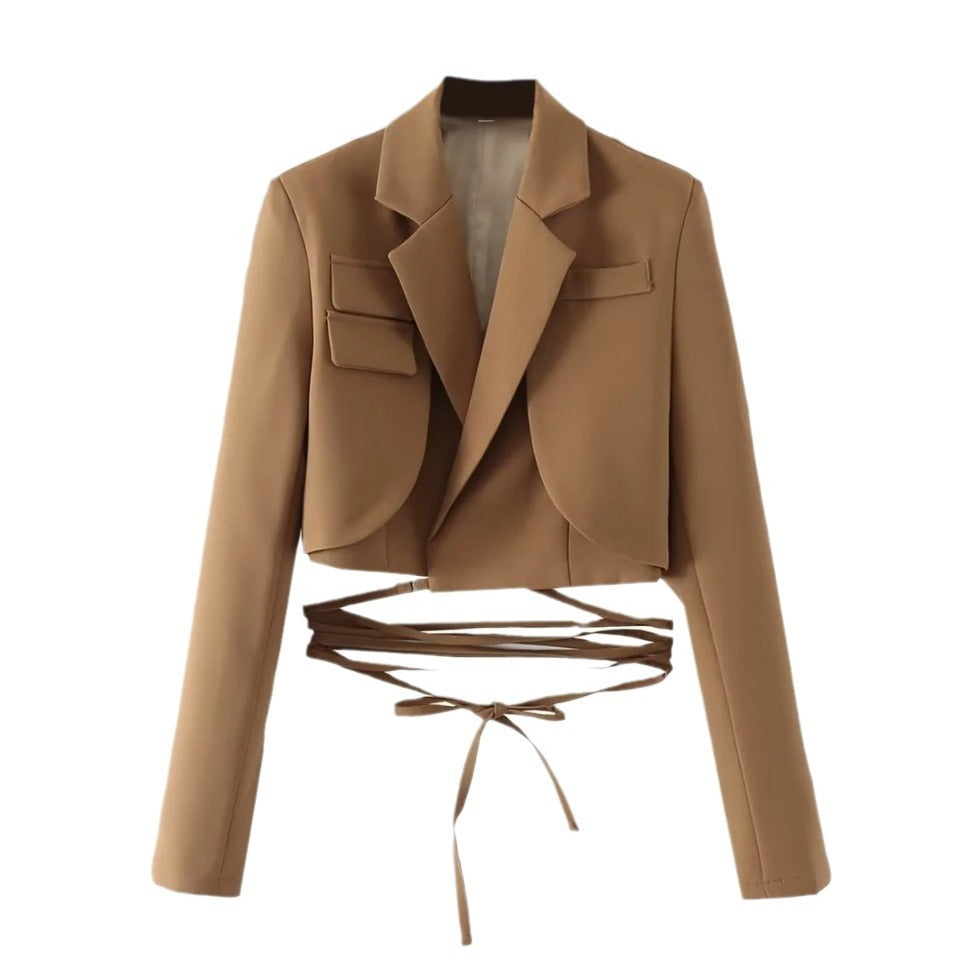 Autumn New Women's Solid Color Waist Rope Lace Suit Long Sleeve Jacket