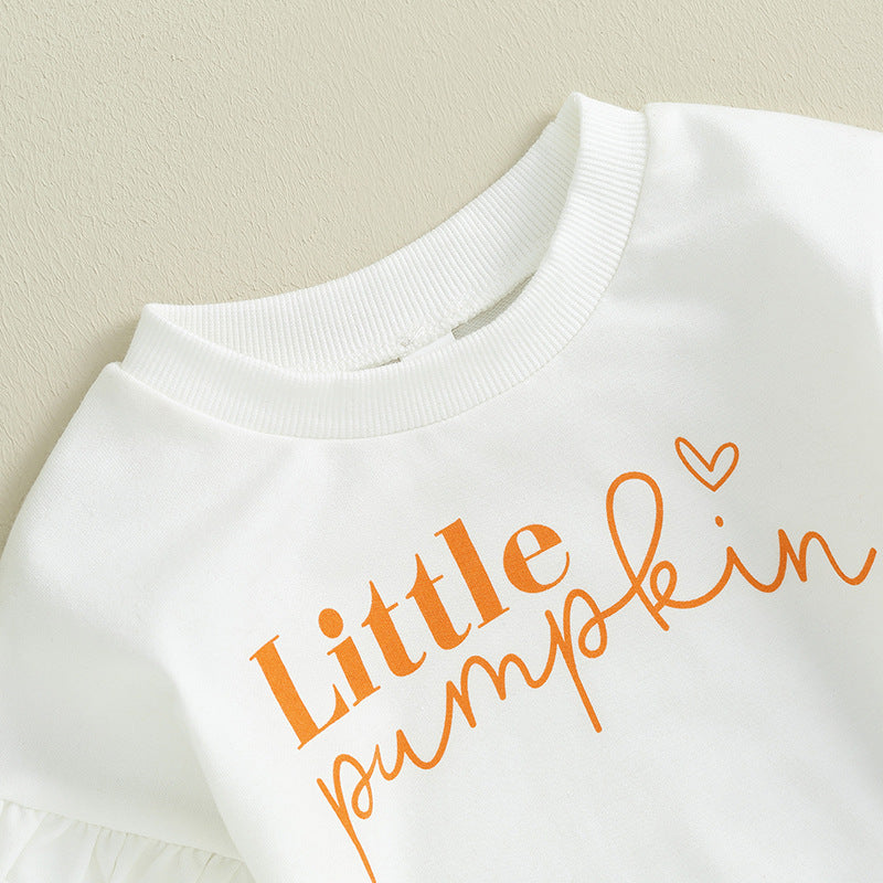 Children Ruffles Sleeve Sweater Sunken Stripe Cotton Bell-bottom Pants Suit