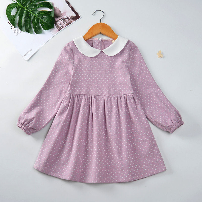 Cotton Cute Doll Collar Long Sleeve Pleated Princess Dress