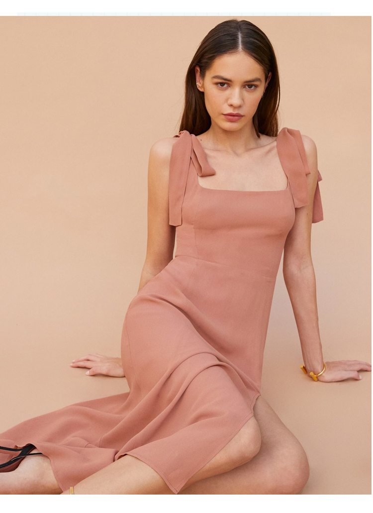 Dress Gentle Bow Bandage Waist-tight Split Suspender Skirt