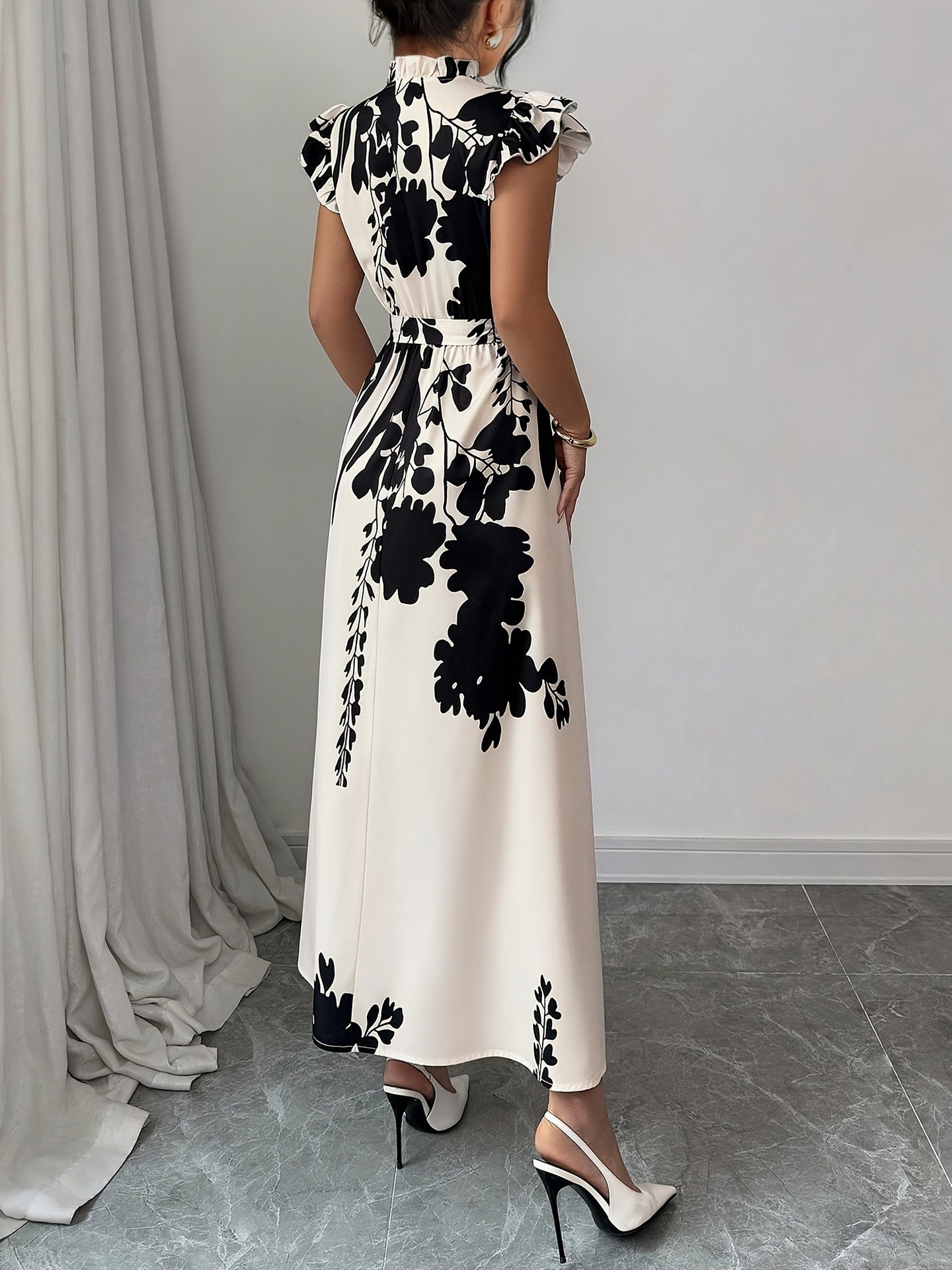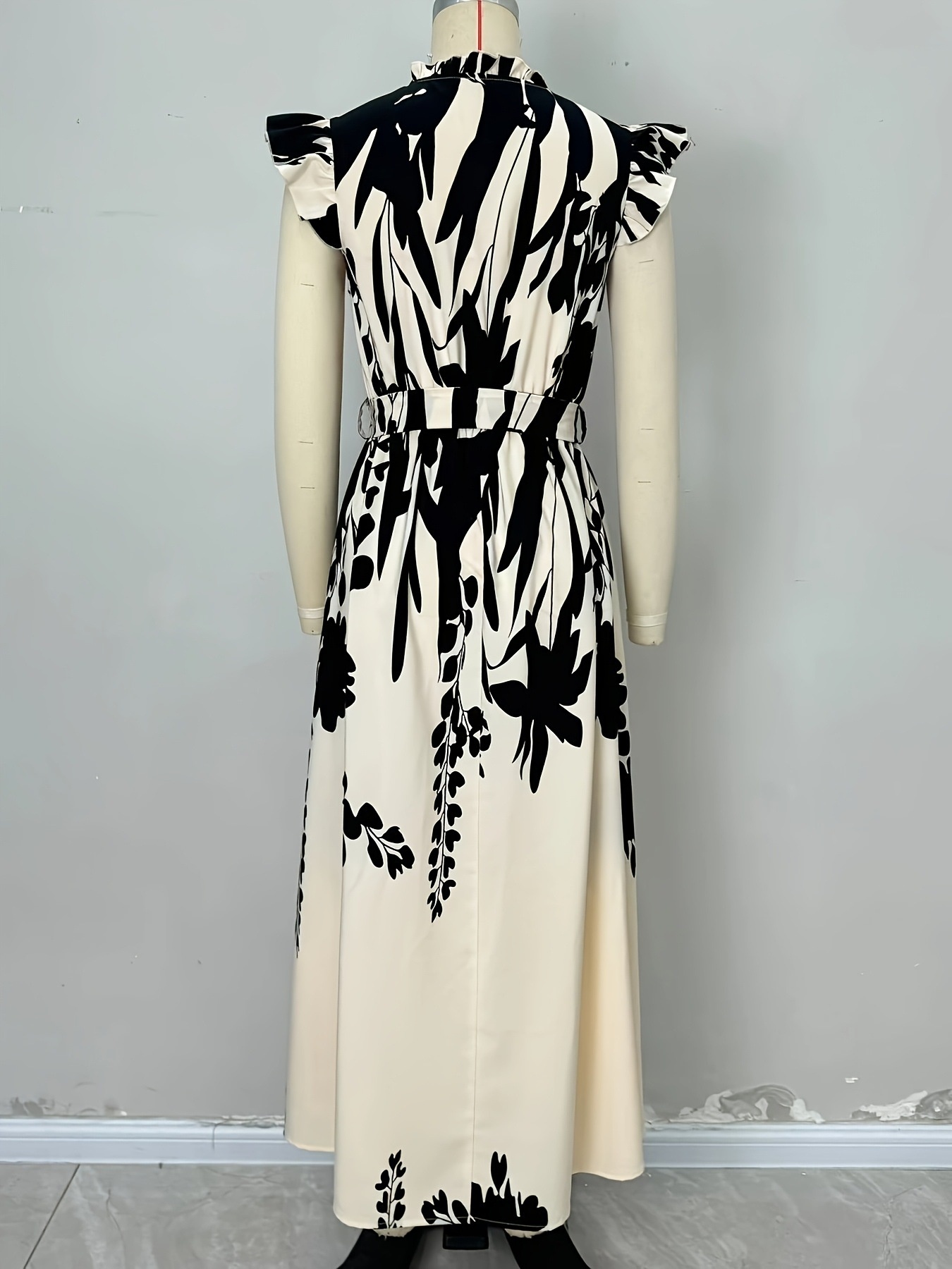 Ethnic Style Printed Small Stand-collar Button-front Long Dress