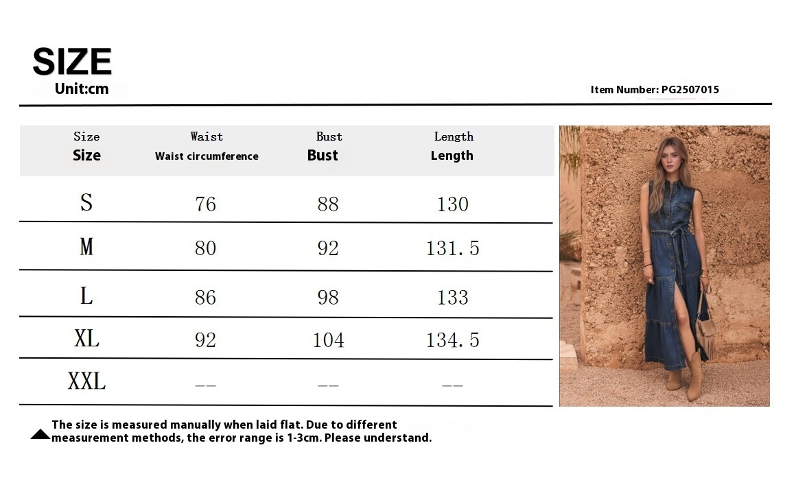 European And American Blue Sleeveless With Waist Lace-up Design Imitation Denim Material