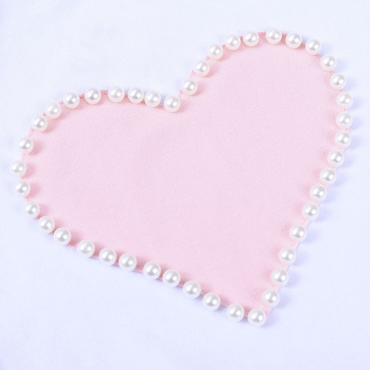 European And American Summer Children's Clothing New Girl Pearl Love White Short Sleeve + bow Skirt Baby Skirt Set