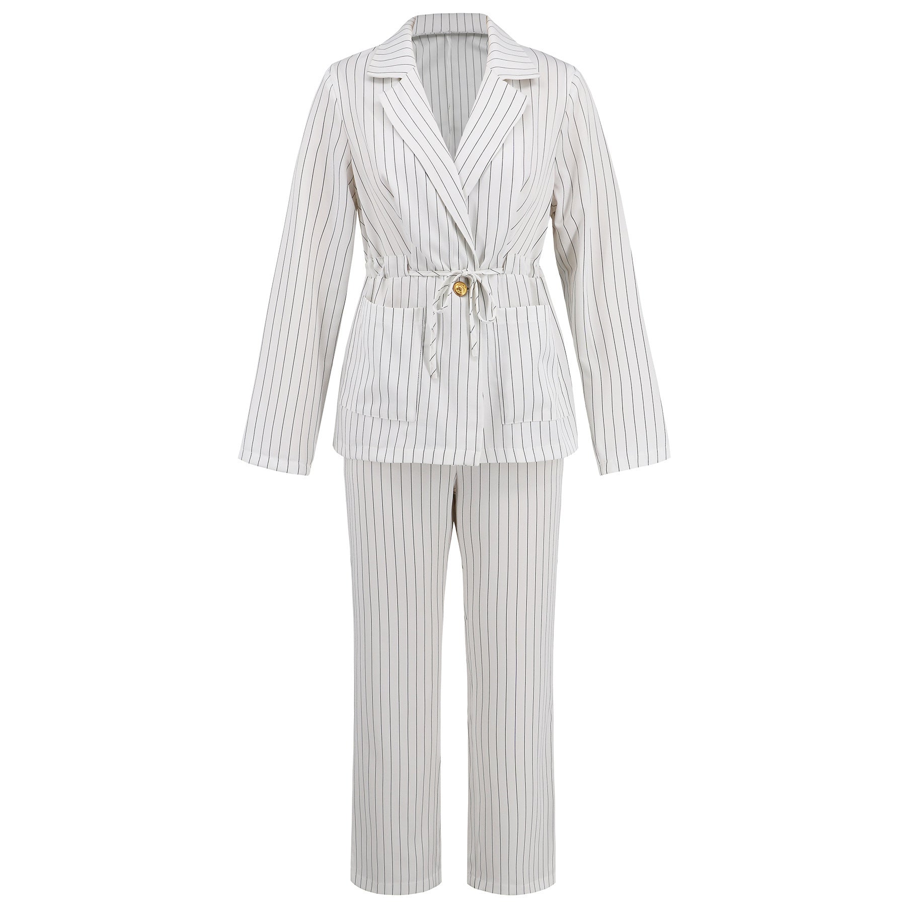 Fashion Striped Lapel Two-piece Suit Suit Drawstring Coat Trousers
