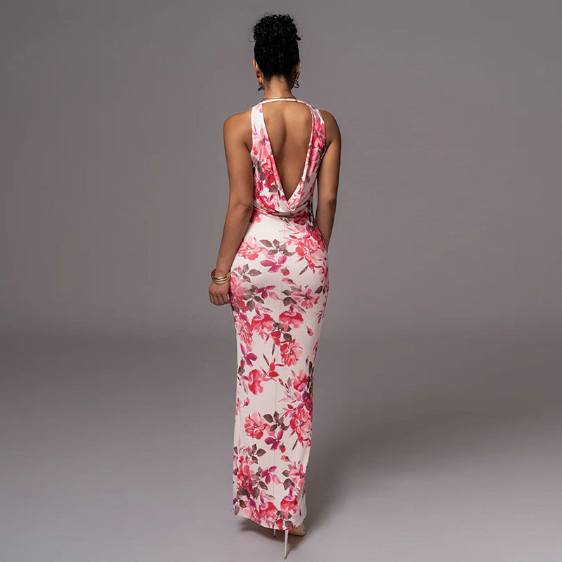 Fashion Temperament Printed Pockets Collar Vest Dress Women