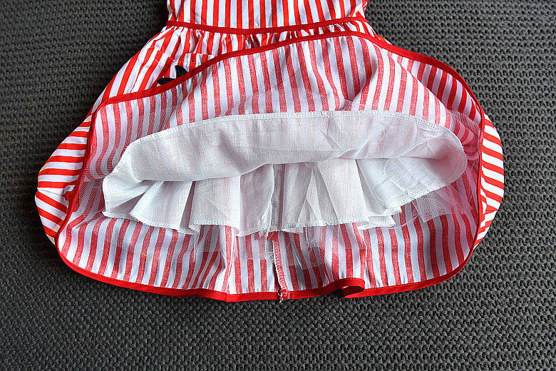 Fashionable And Cute Girls' Striped Sleeveless Backless Dress