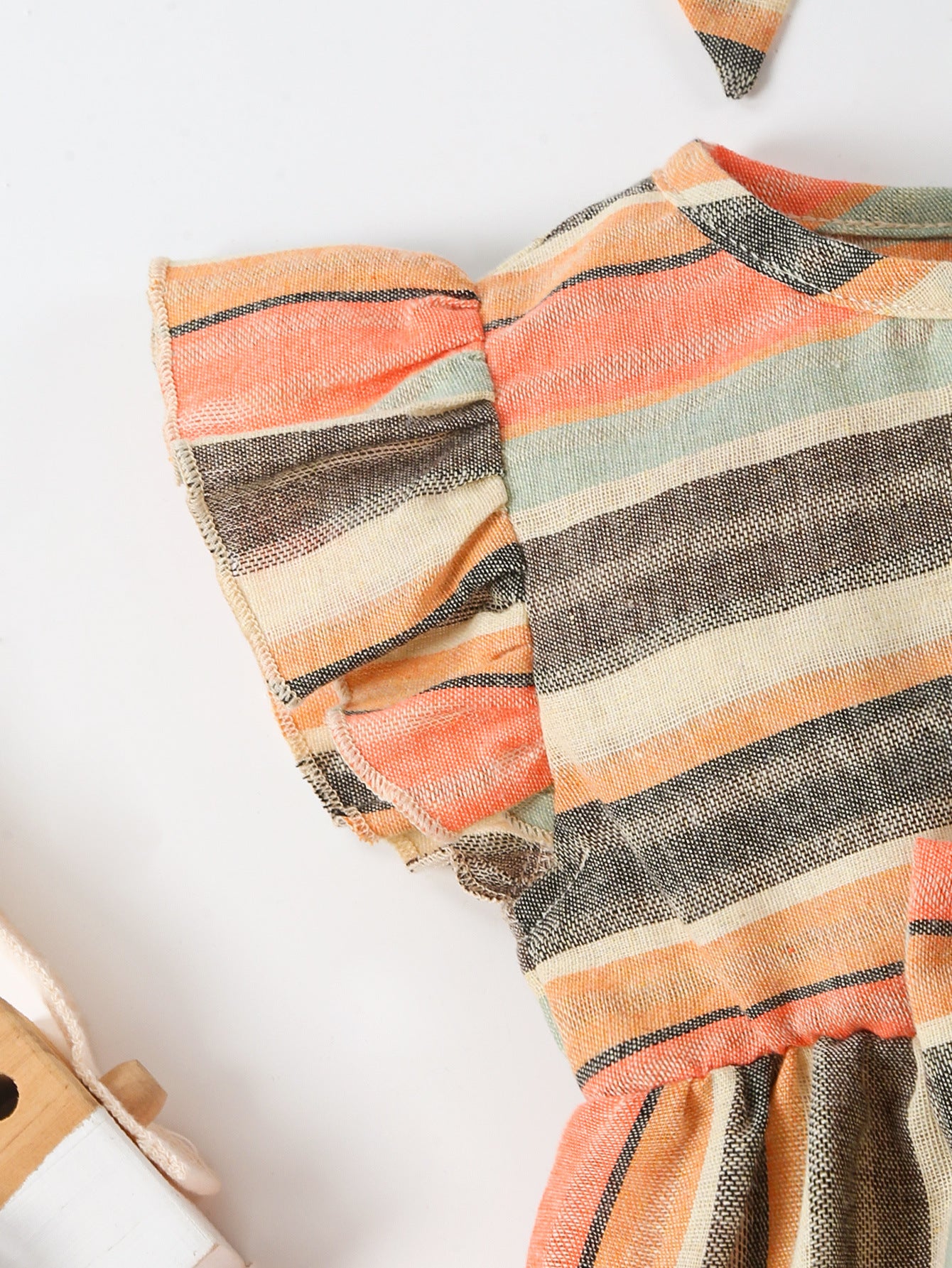Flounced Sleeve Bow One-piece Romper Crawling Suit Same Style Fashion Hair Band