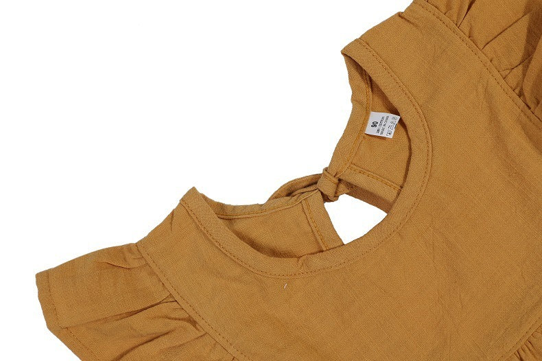 Flounced Sleeve Dress Girls' Back Collar Lace-up