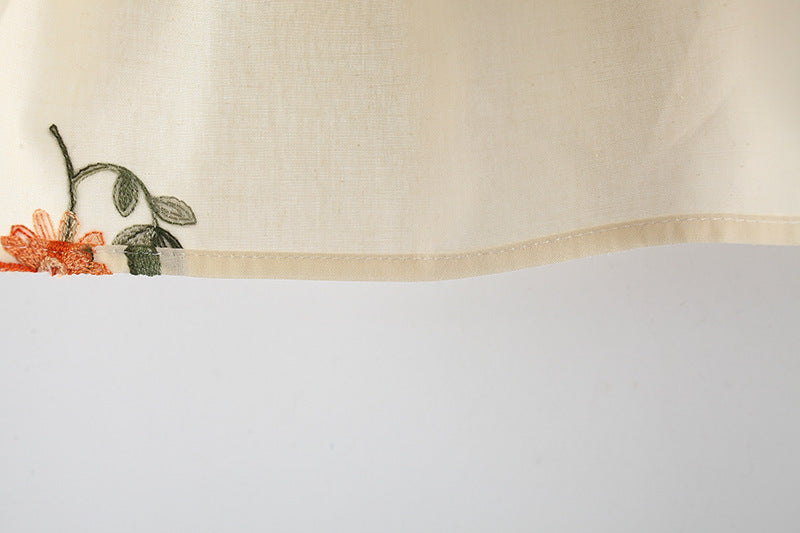 Full Body Embroidered Flowers Flounced Sleeve Cotton Dress