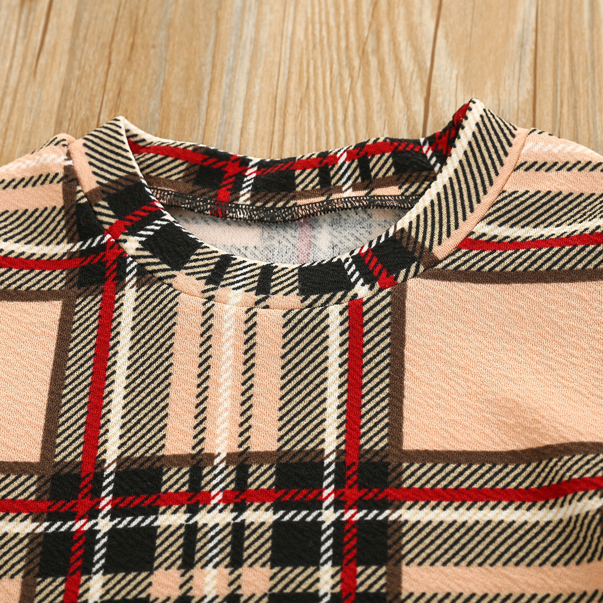 Girls Fashion Plaid Short Sleeve Top Skirt Two Piece Set