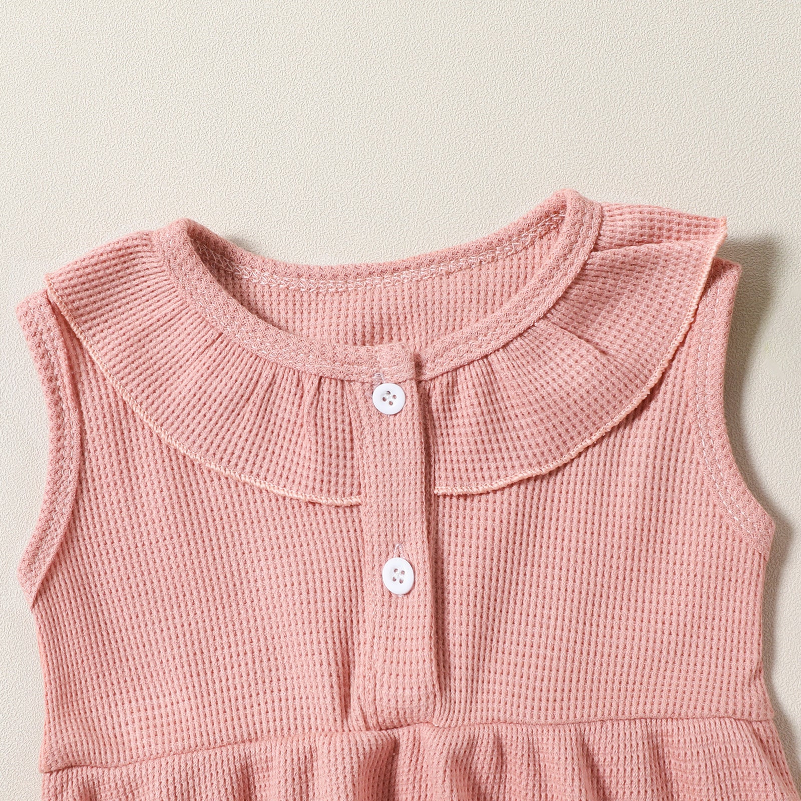 Girls' Fashion Waffle Sleeveless Dress Top Shorts Headdress Three-piece Set