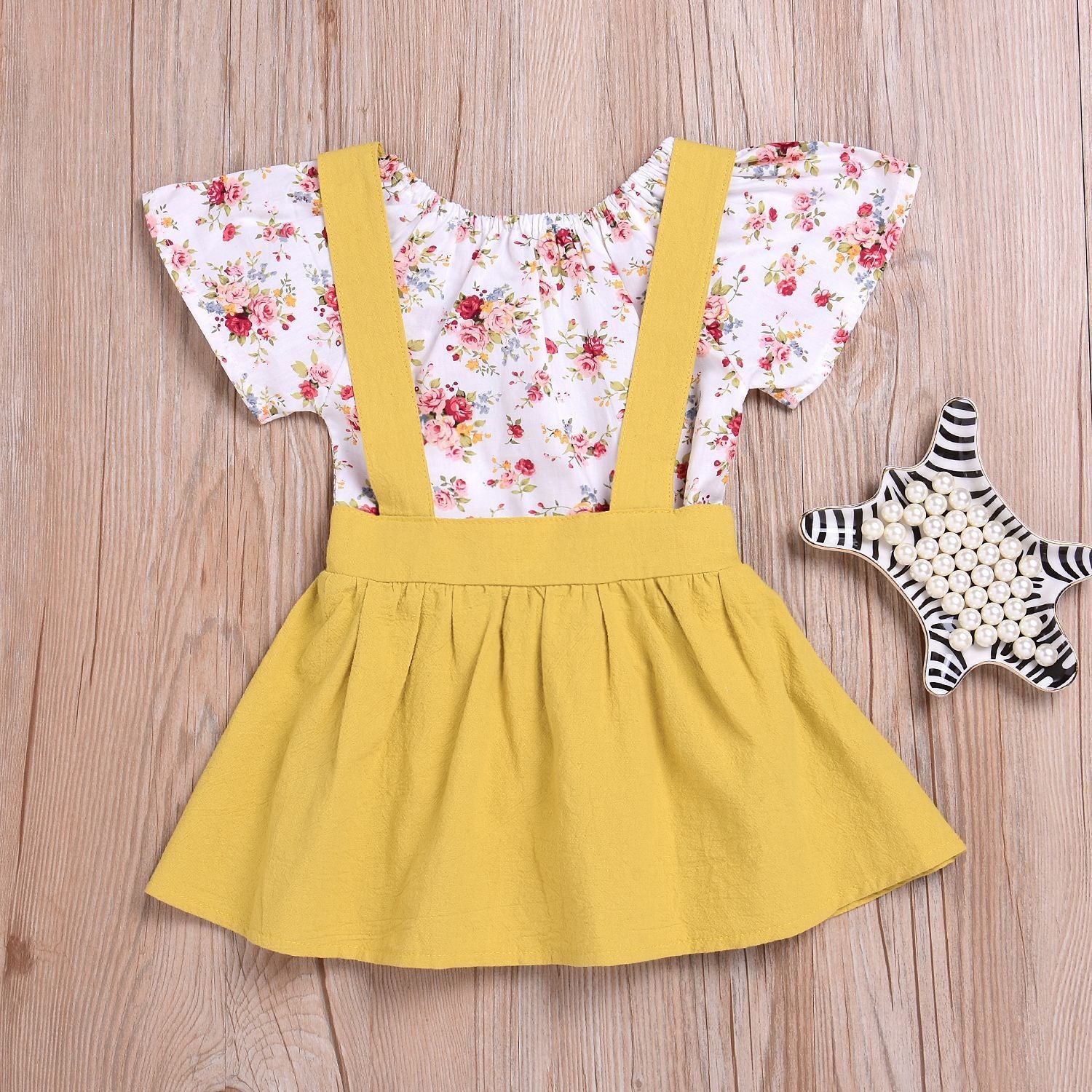 Girls flower strap dress two-piece suit