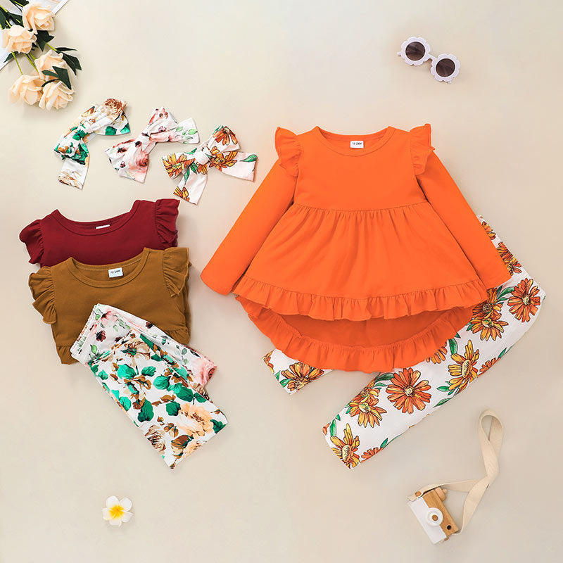 Girls' Lotus Leaf Lace Skirt And Trousers Suit