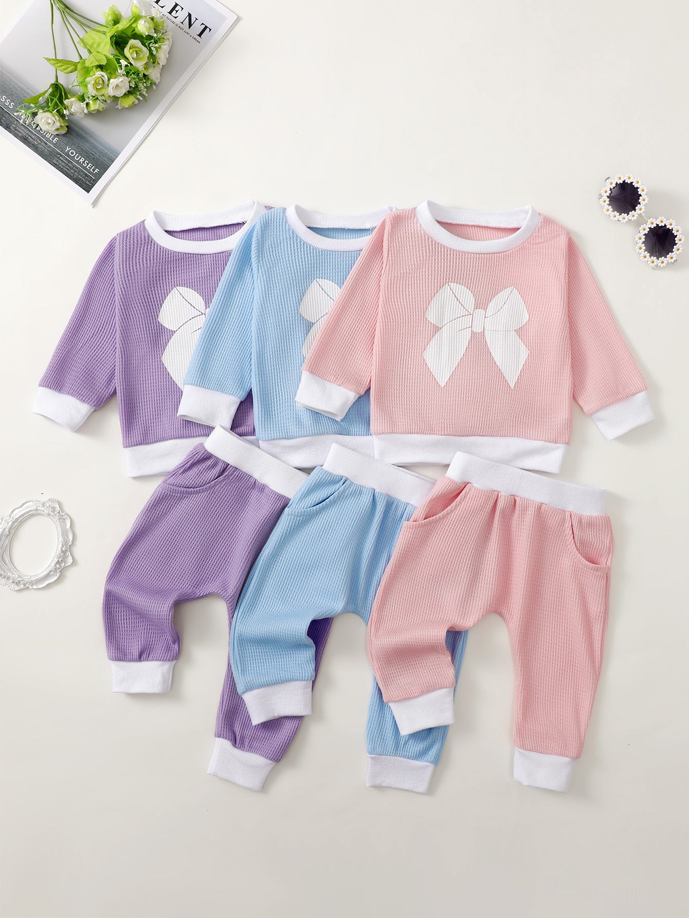 Girls' Printed Waffle Sweater Suit