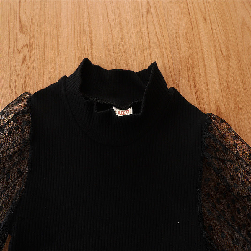 Girls' Suit New Children's Mesh Sleeves Top Denim Suspender Pants Two-piece Set