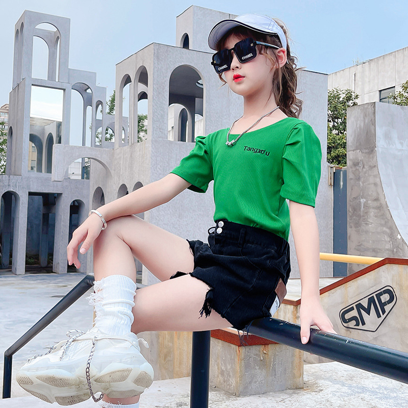 Girls Summer Personalized Back Hollow Short-sleeved Shorts Suit