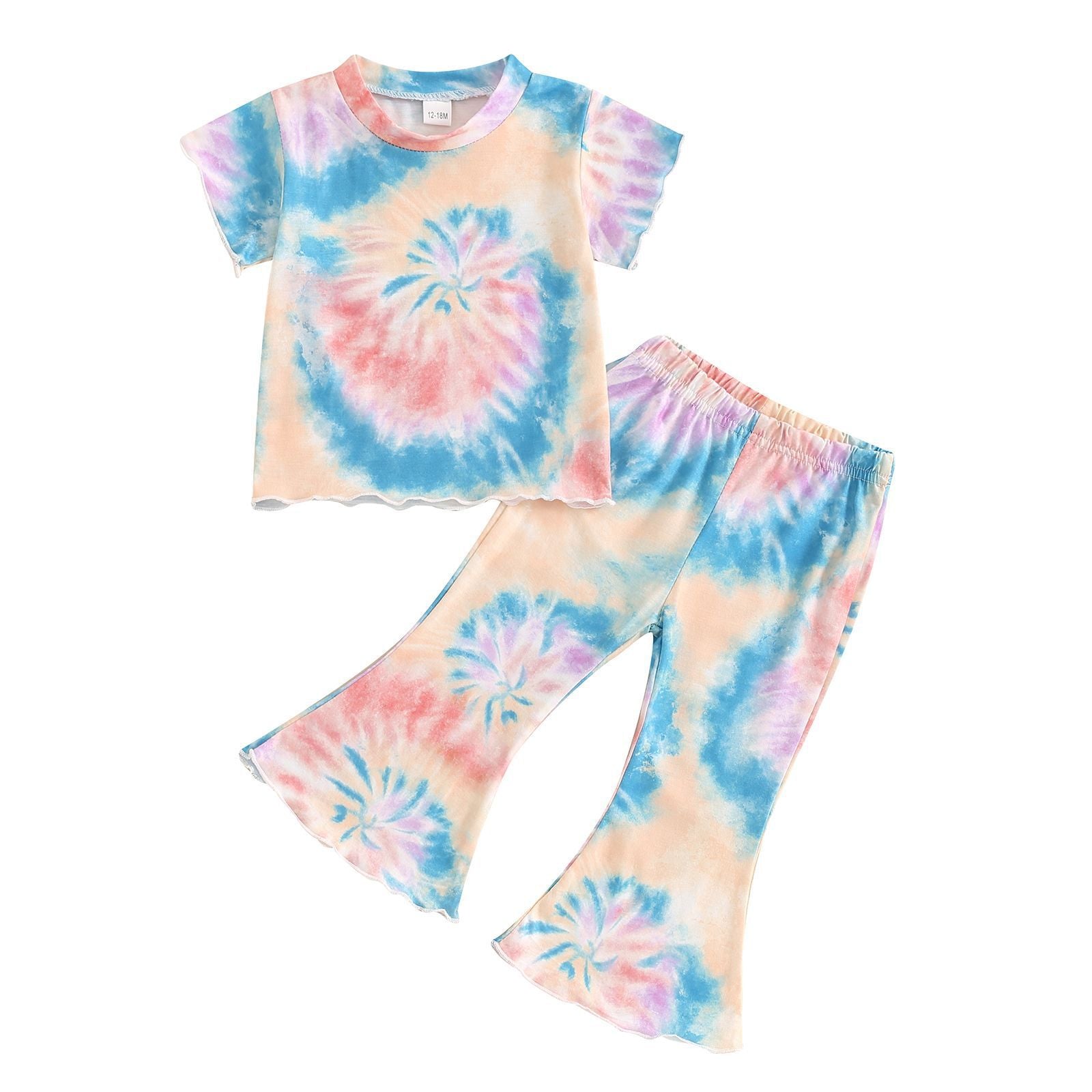Girls' Tie-dye Peplum Top Bell-bottom Pants Suit