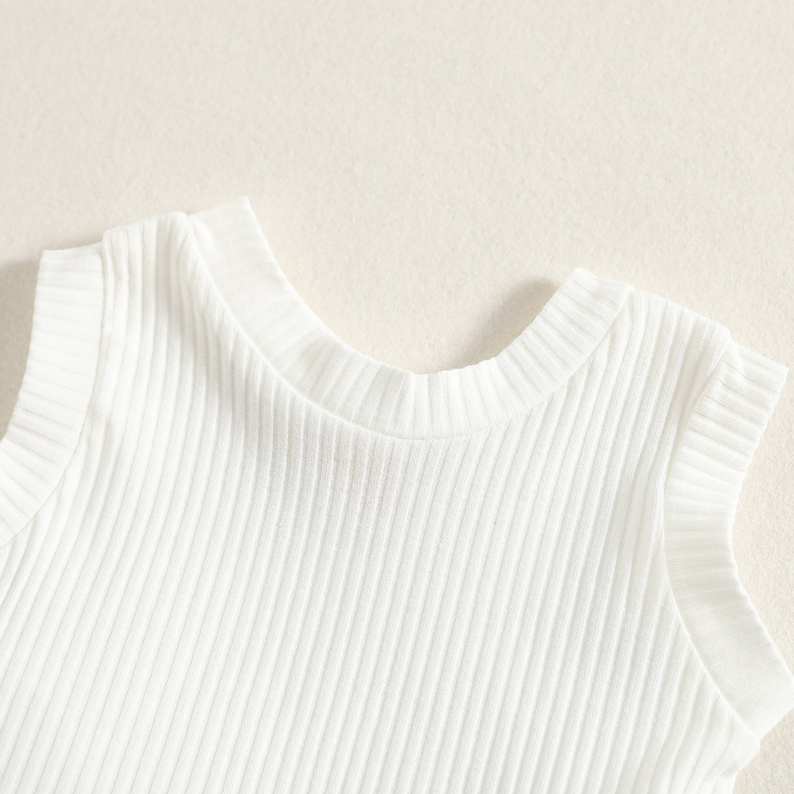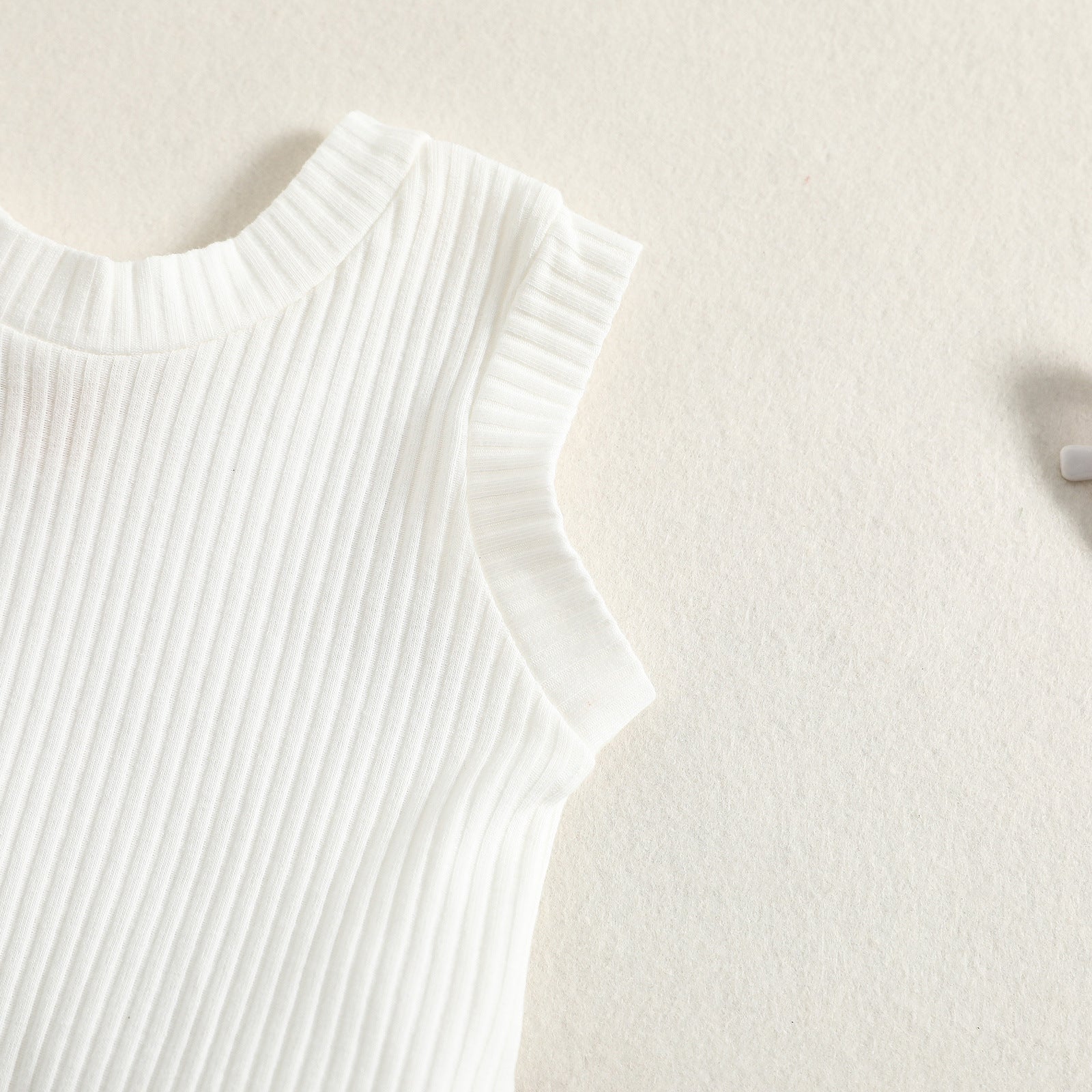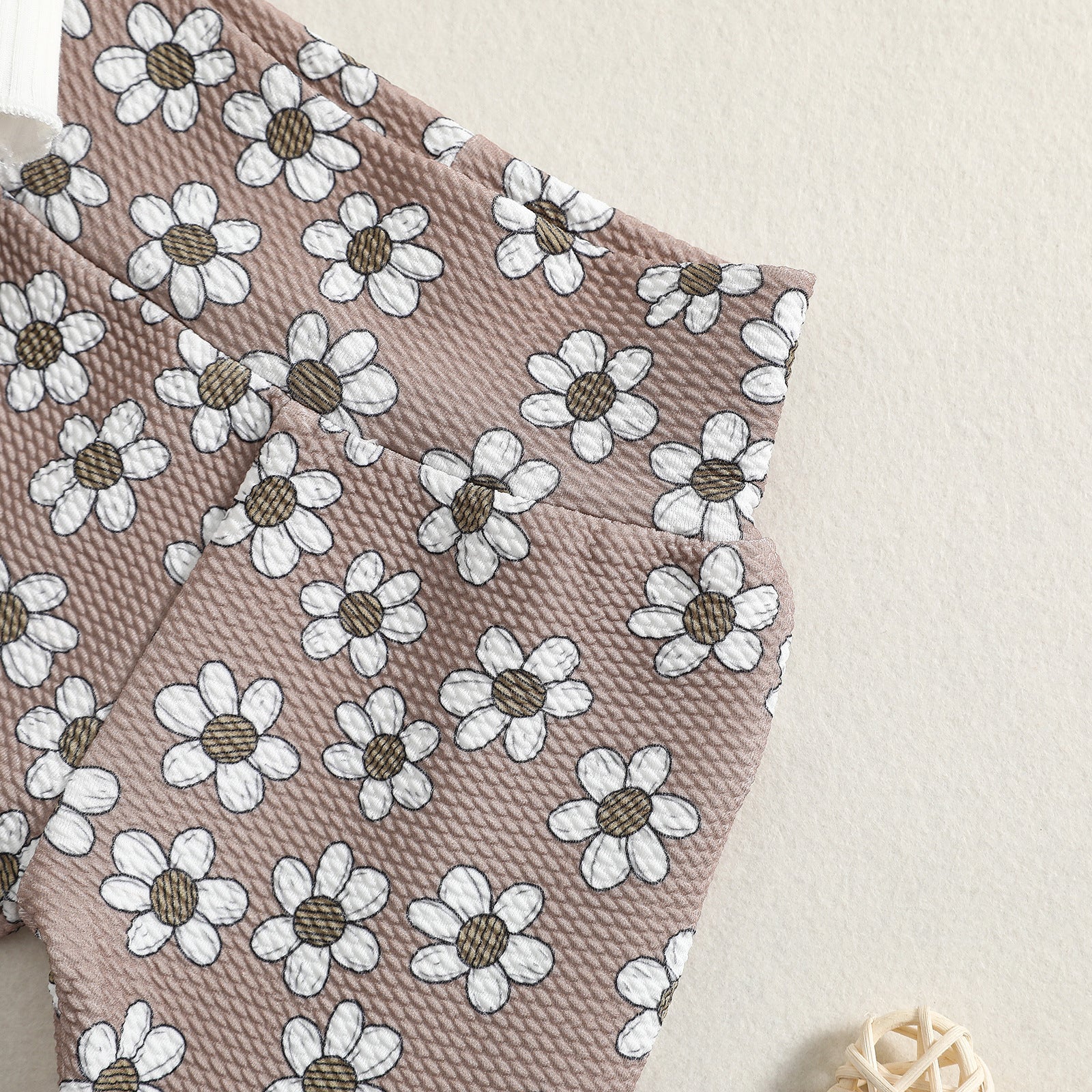Girls' White Fresh Sleeveless Vest Printed Bell-bottom Pants Two-piece Suit