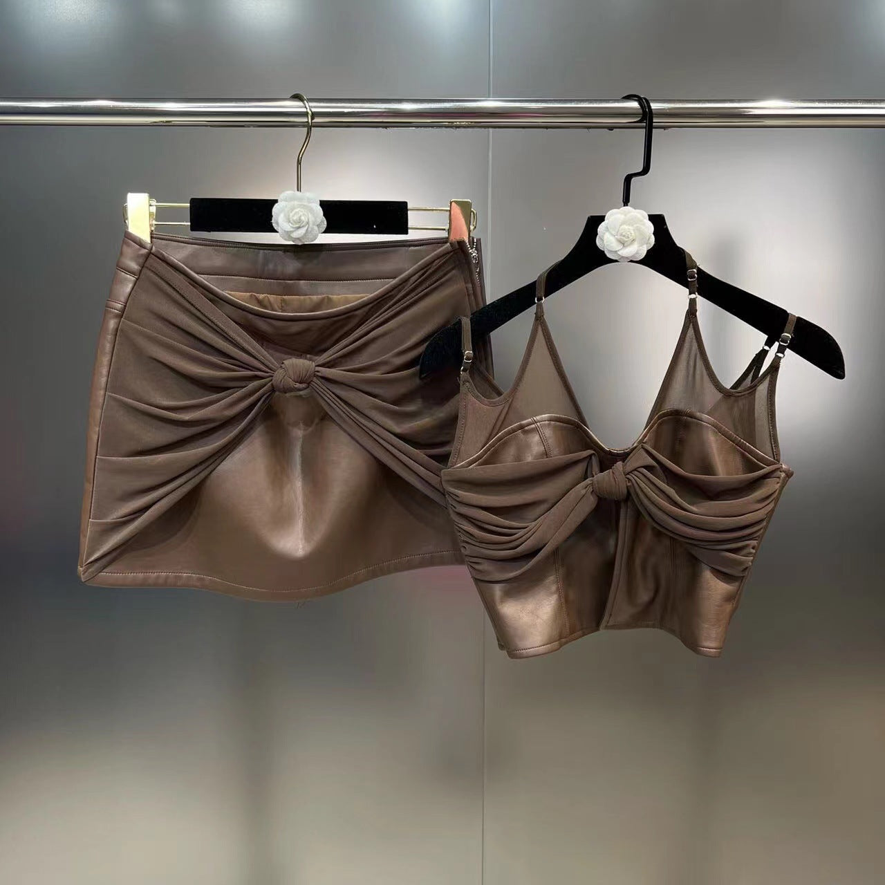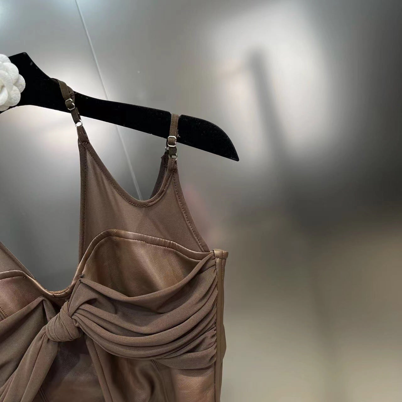 Halter Spun Yarn Sling With Mid-length Dress Set