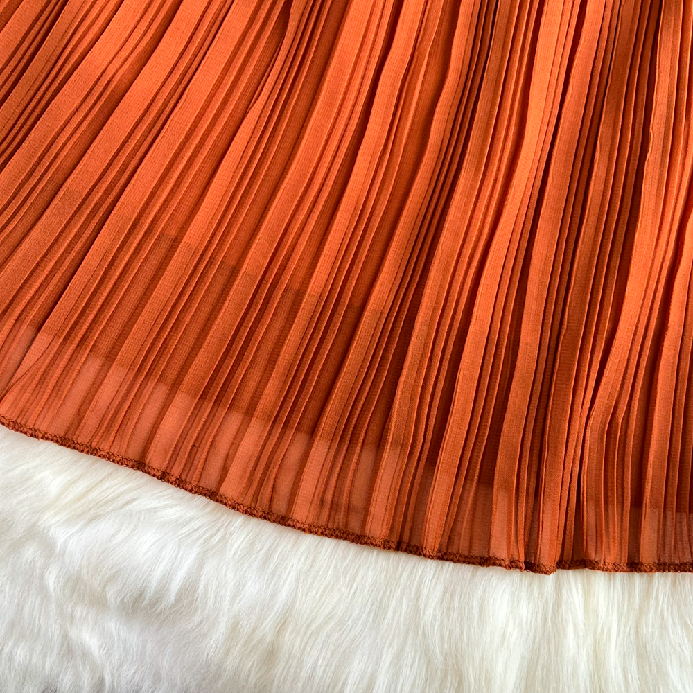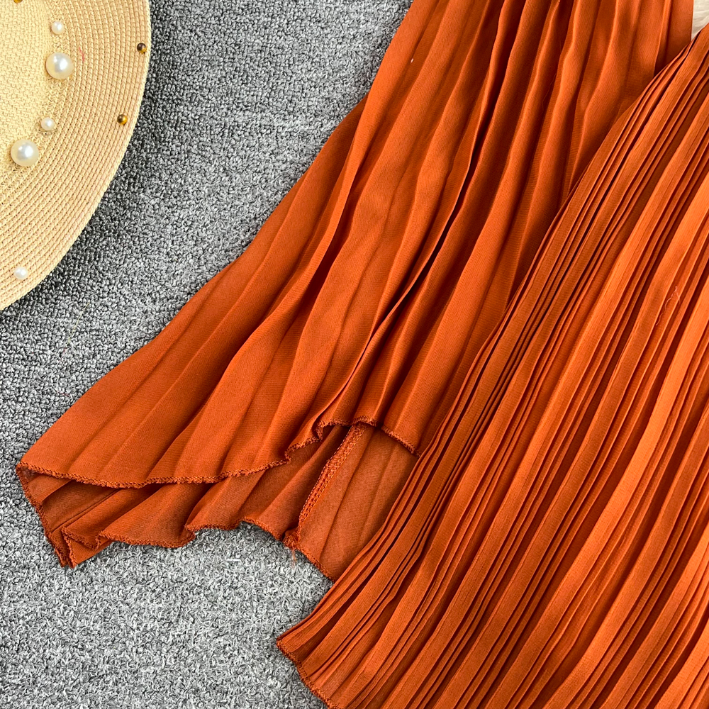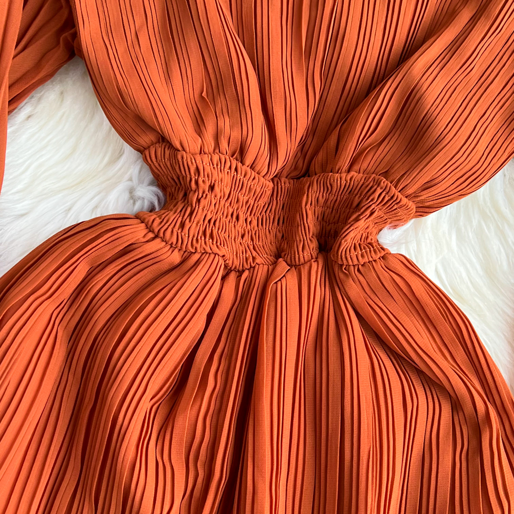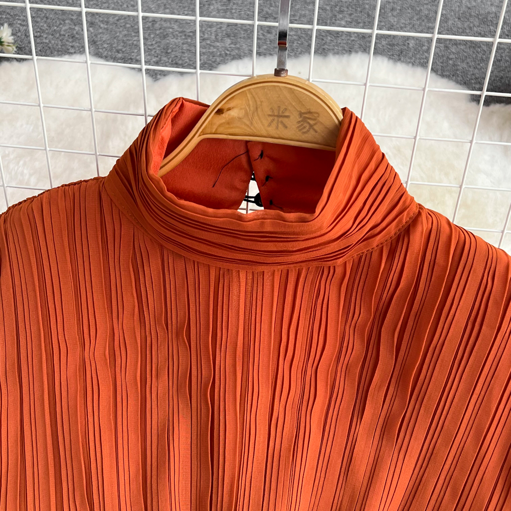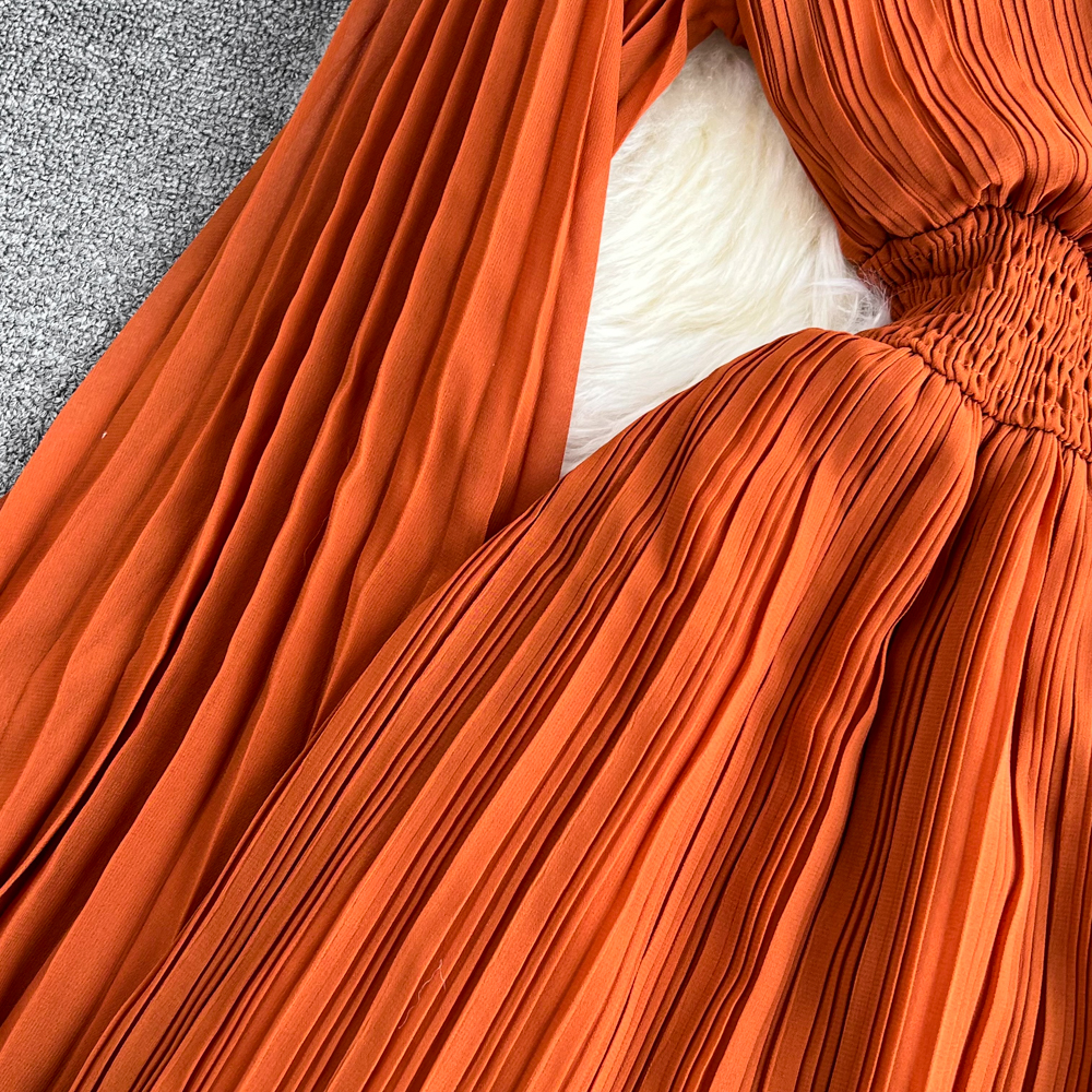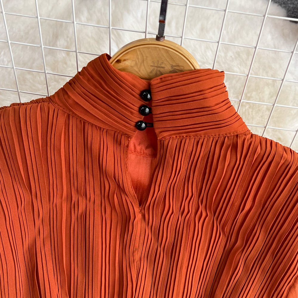 Horn Long Sleeves Stand Collar Waist A-line Chiffon Dress