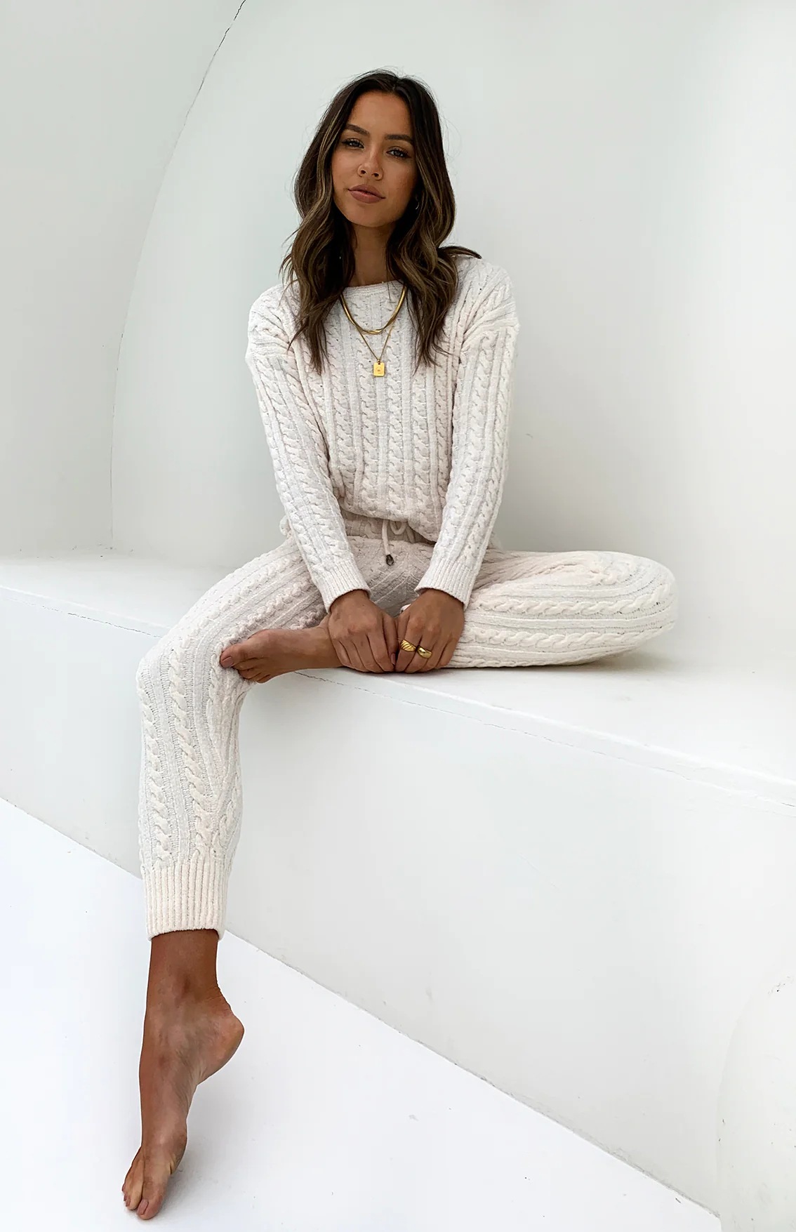 Knitted Hooded Suits Women's Waist Long Sleeve Trousers