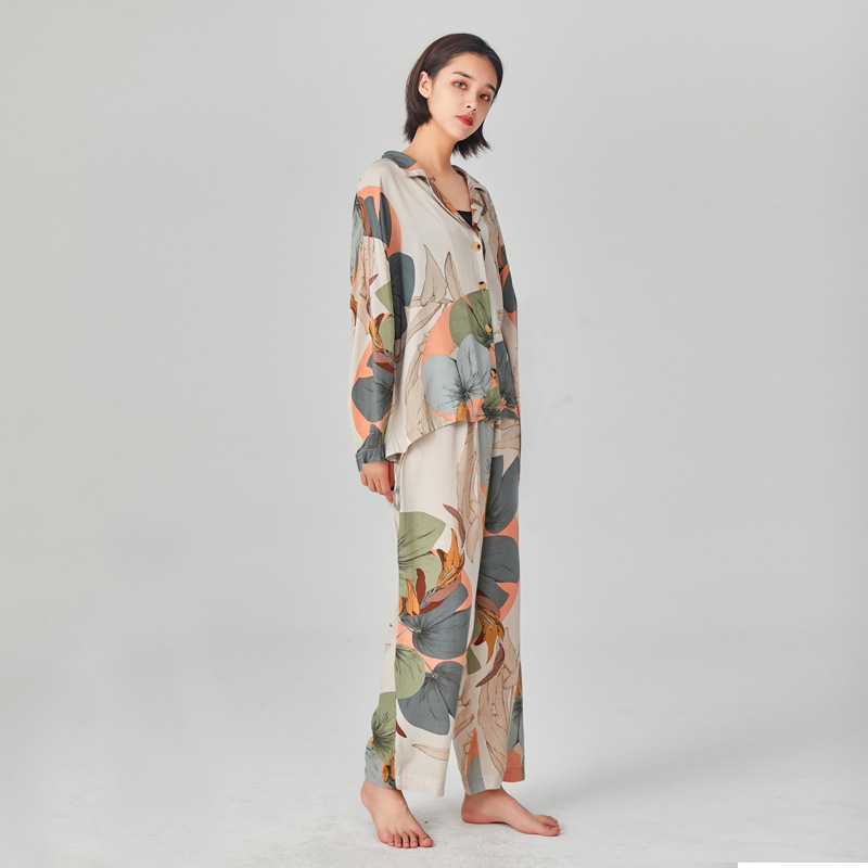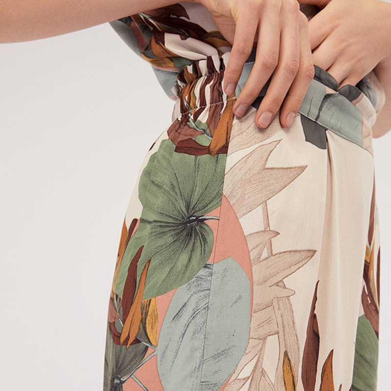 Style: Style A: Palm Leaf Short Sleeve Cropped Pants Style B: Palm Leaf Short Sleeve Shorts Style C: Palm leaf long-sleeved trousers