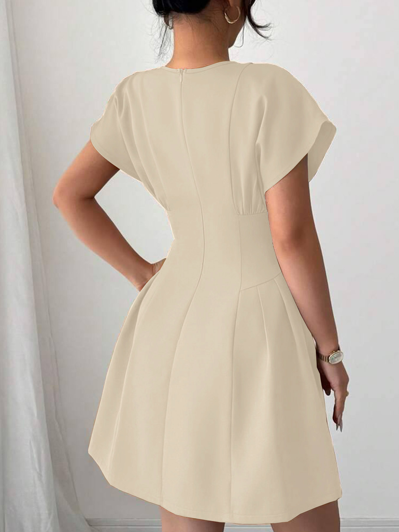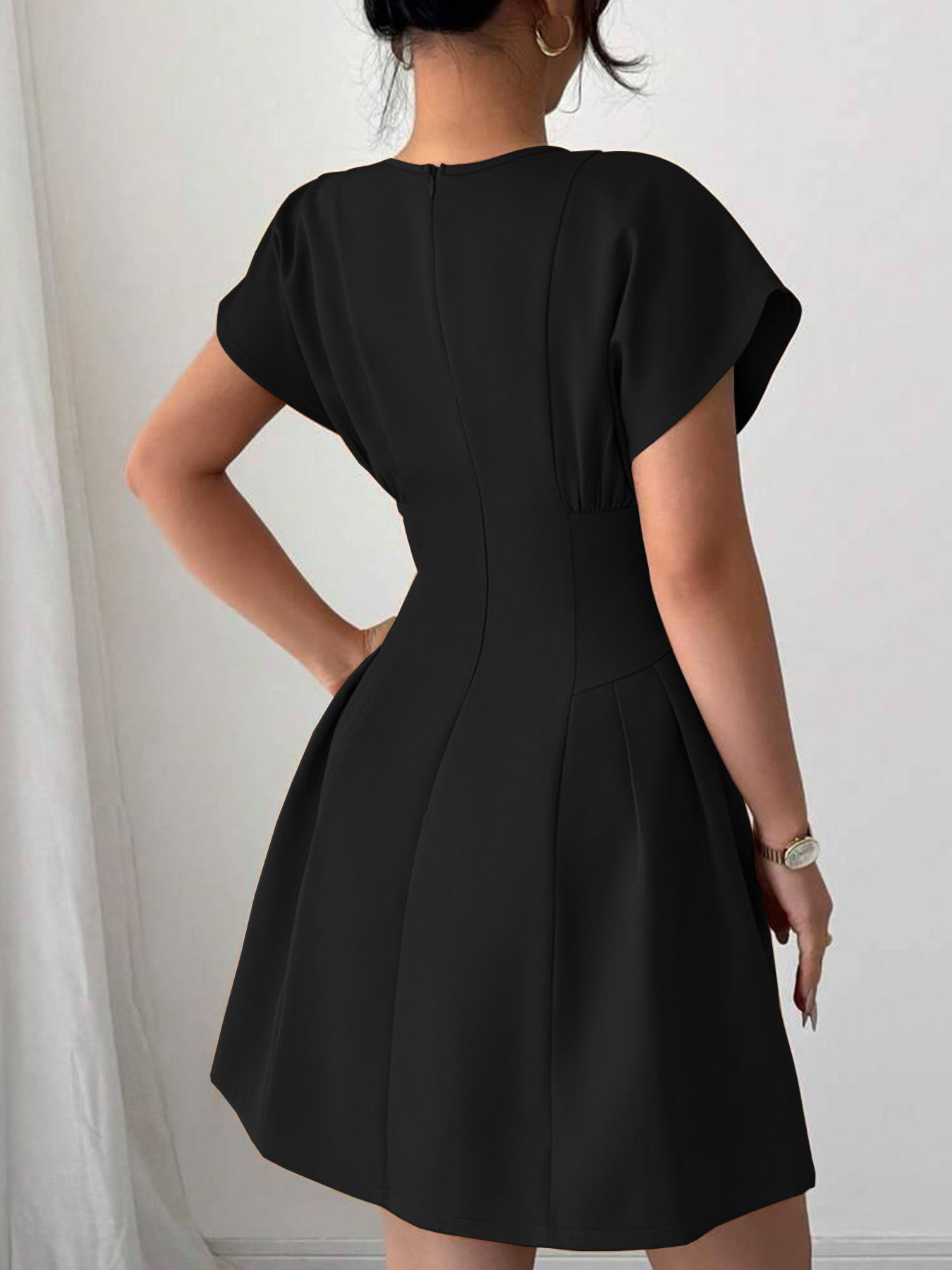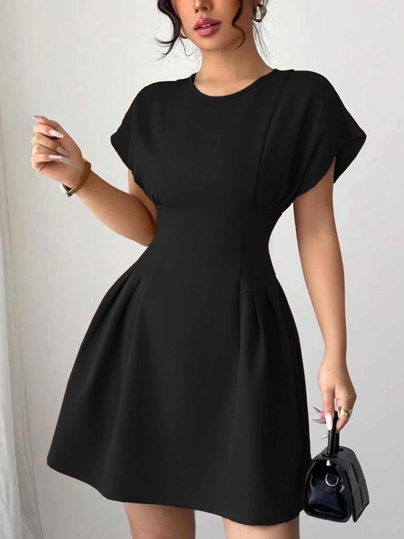 New Elegant Slim-fit Simple Waist-tie Solid Color High-waist Dress