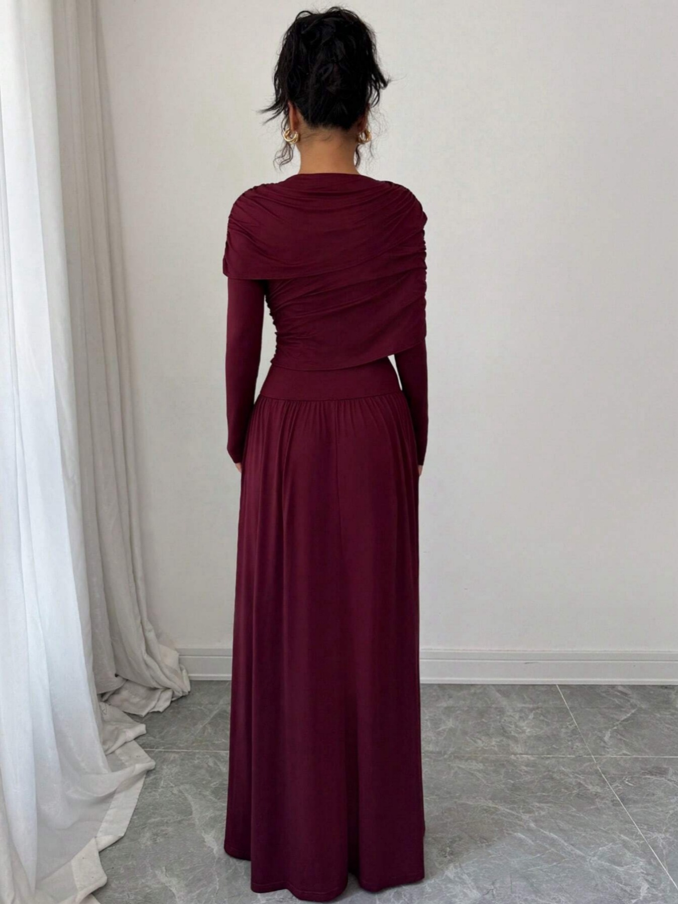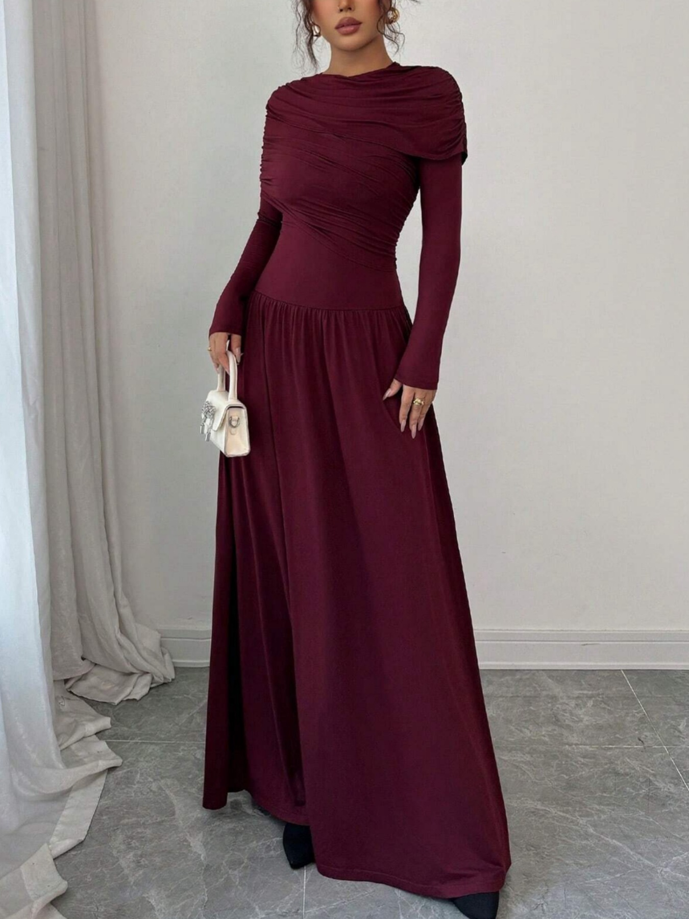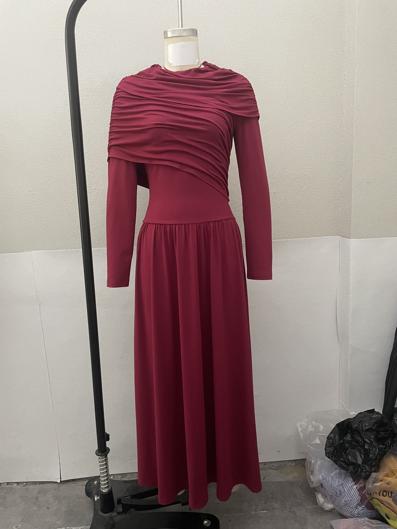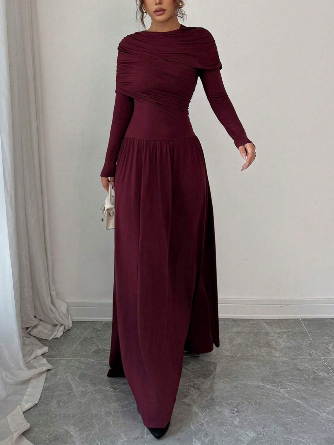 New Women's Fashion Elegant Shawl Solid Color Long Dress
