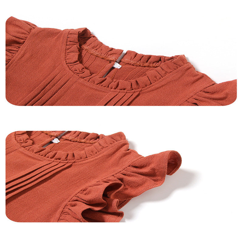 Princess Dress Lace Flying Sleeves Solid Color Linen Girl Dress