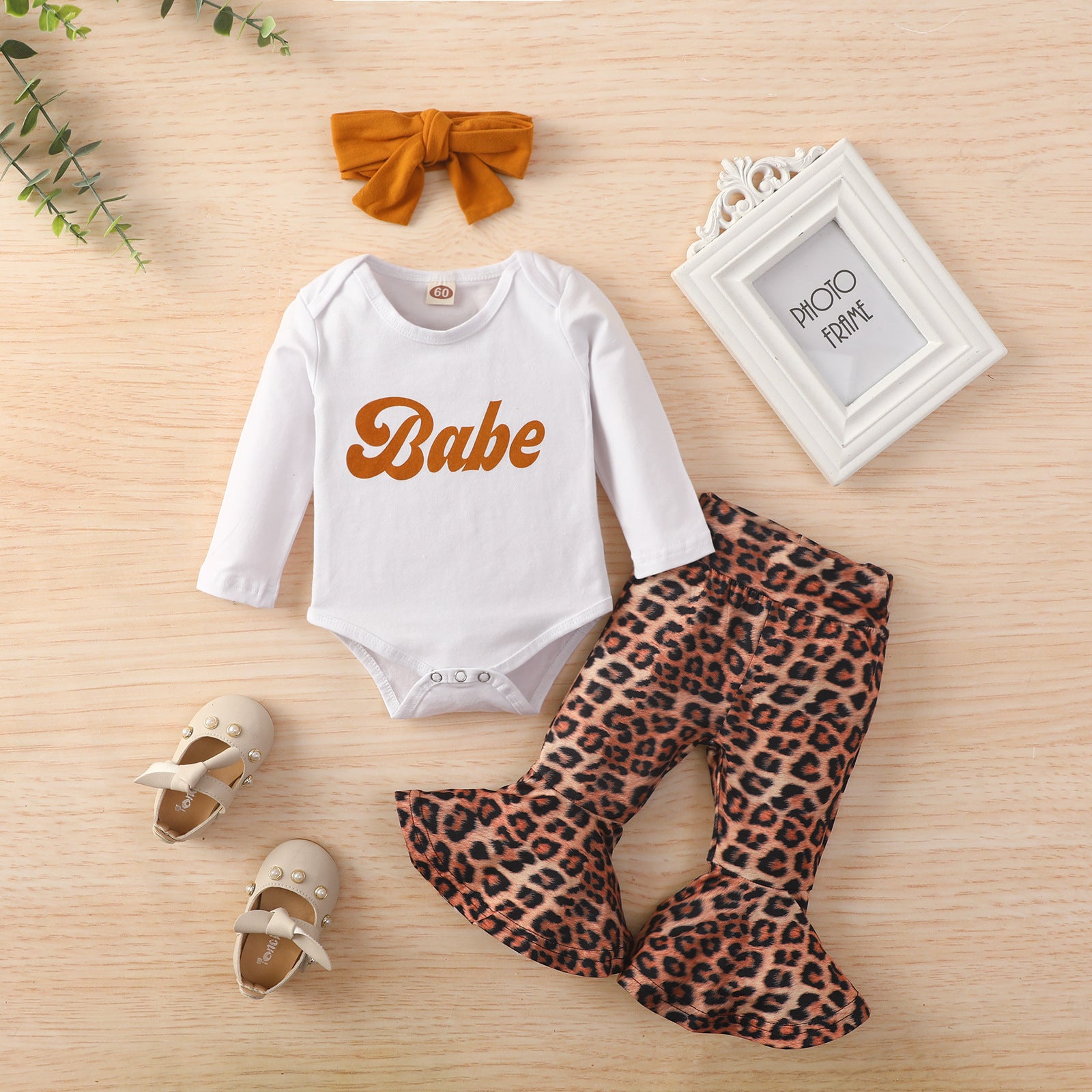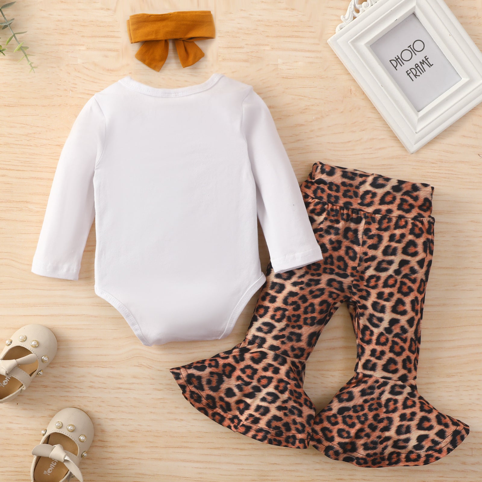 Printed Romper And Leopard-print Flared Trousers