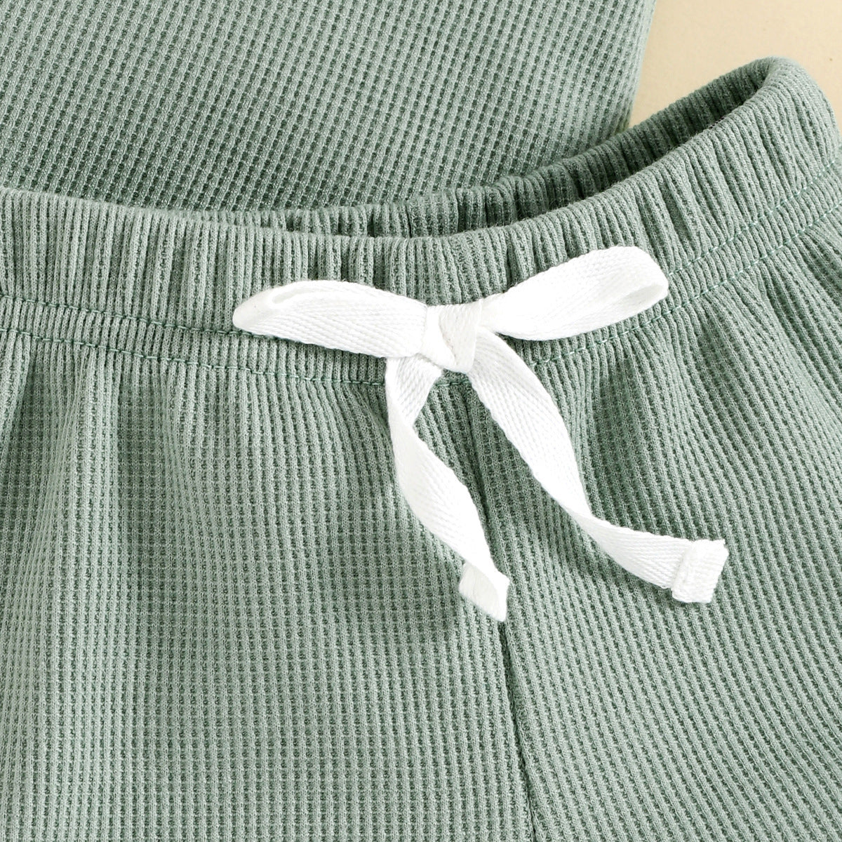 Rainbow Waffle Four-color Side Button Short Sleeve Baby Bodysuit Shorts Suit