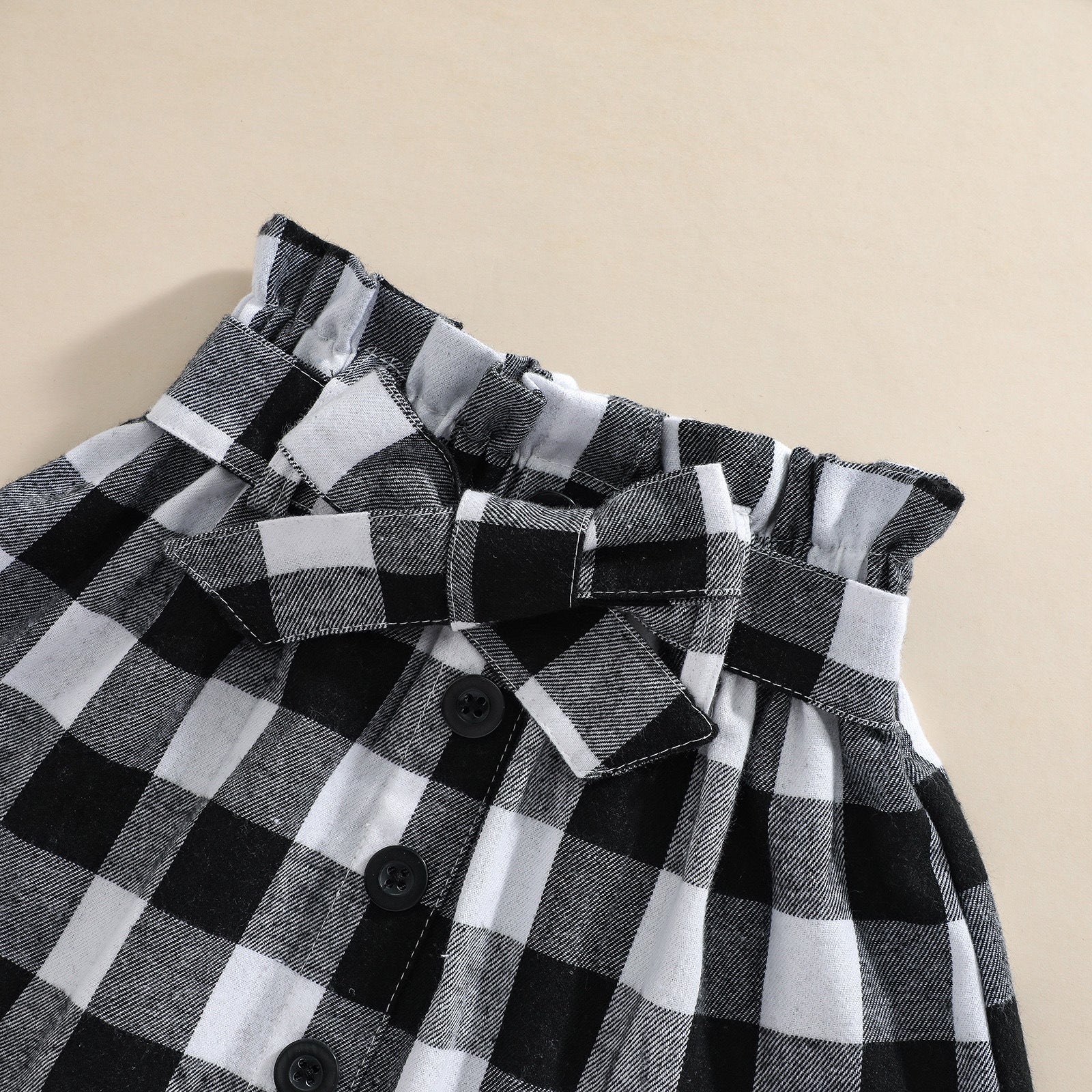 Red And Black Plaid Skirt Suit Black Polka Dot Flying Sleeve Two Piece