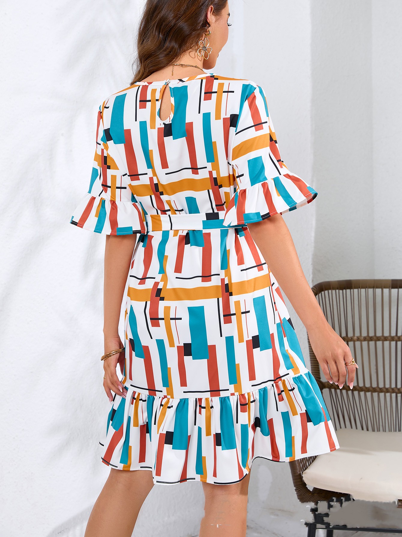 Round Neck Ruffled Tied Dress