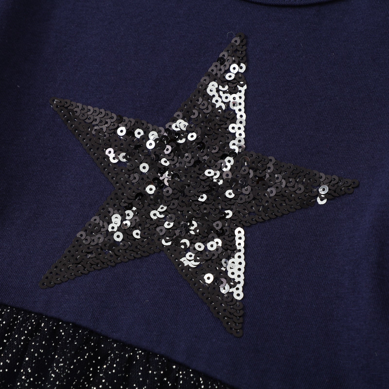 Short Sleeve Fashion Girls Knitted Top Dress Mesh Princess Dress