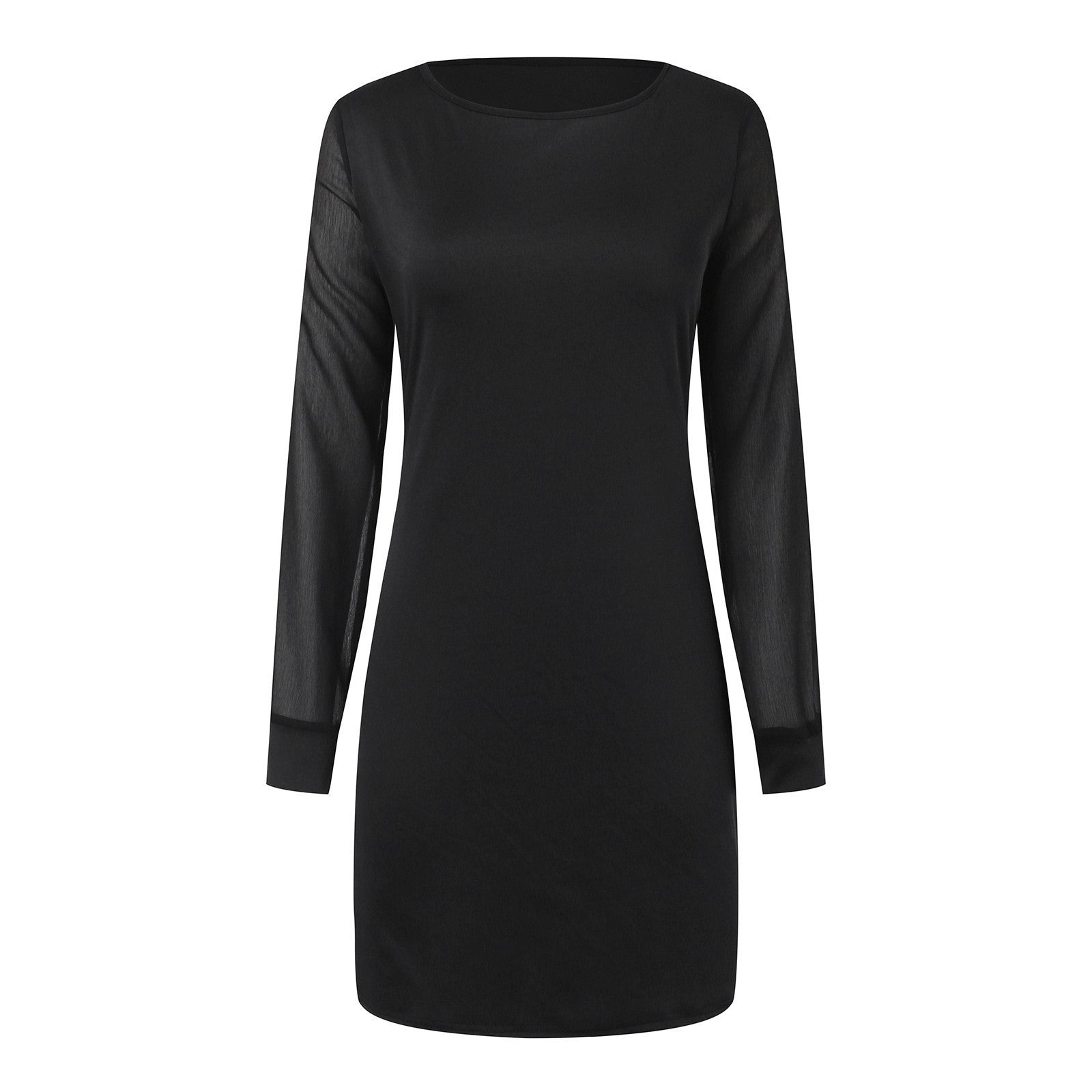 Solid Color Dress Mesh Chiffon Stitching Long Sleeve