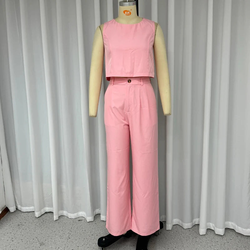 Solid Color Sleeveless Vest Temperament Straight-leg Trousers Suit