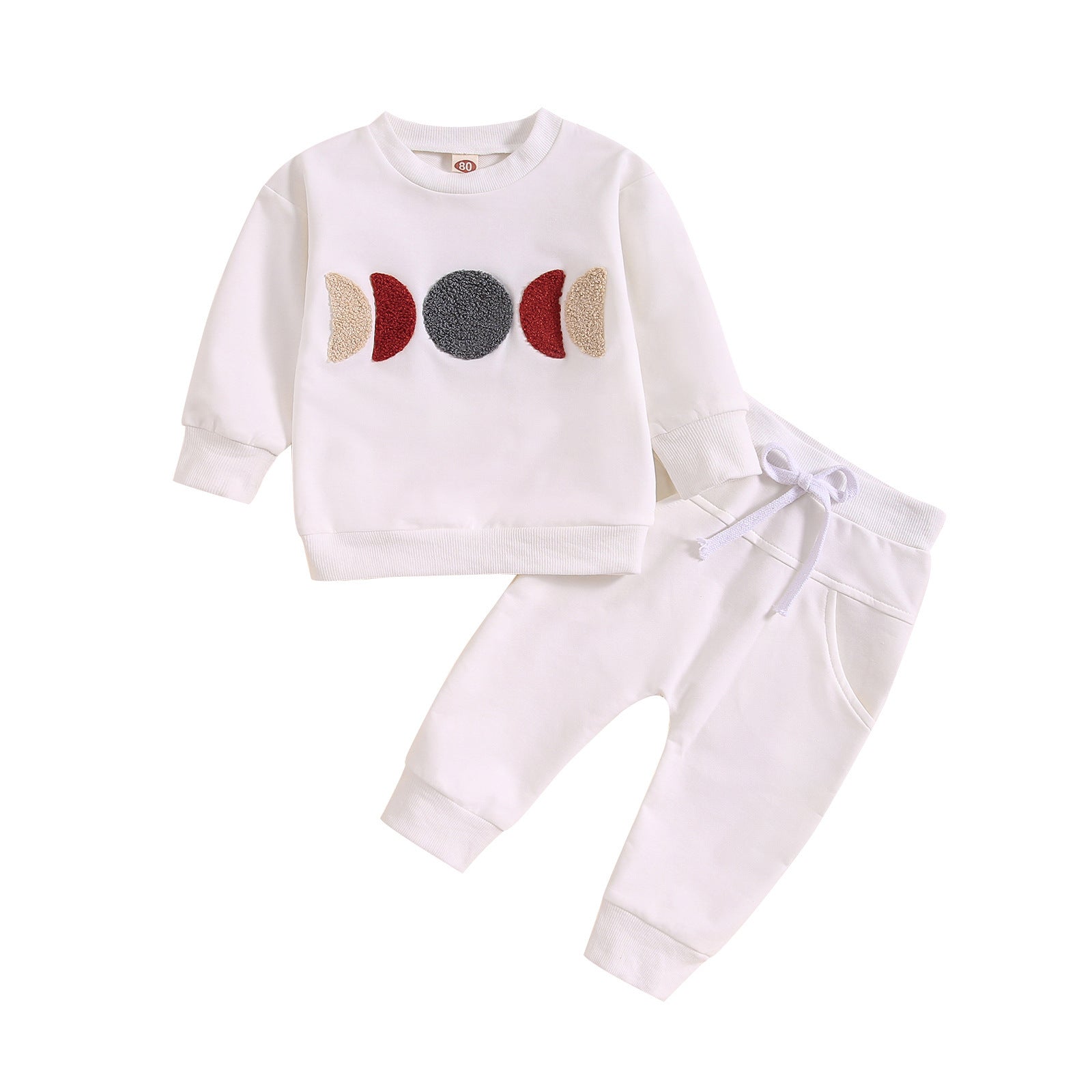 Solid Color Towel Embroidery Casual Long-sleeved Top And Trousers Two-piece Set