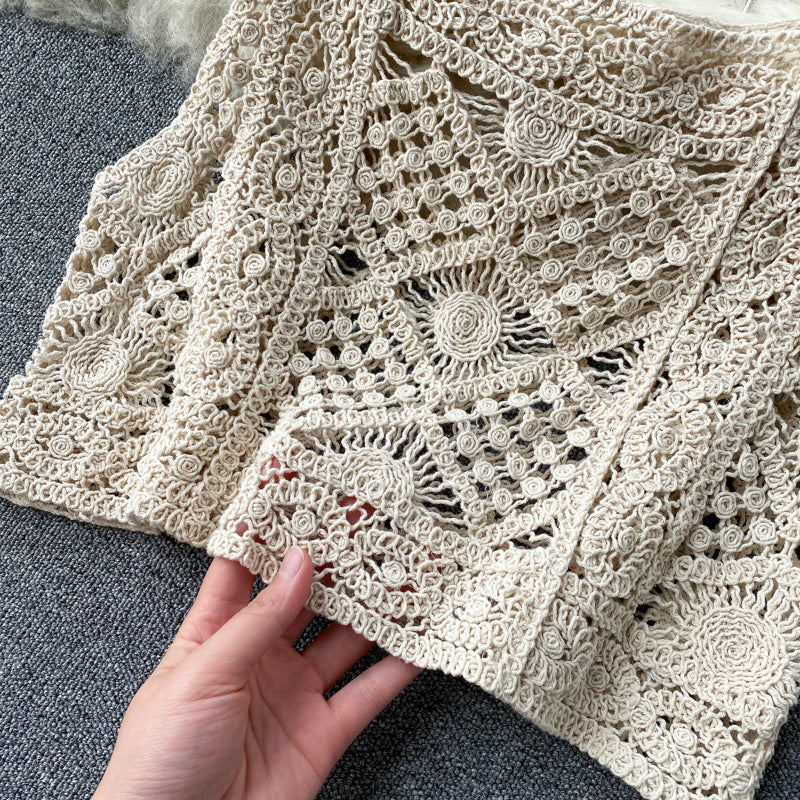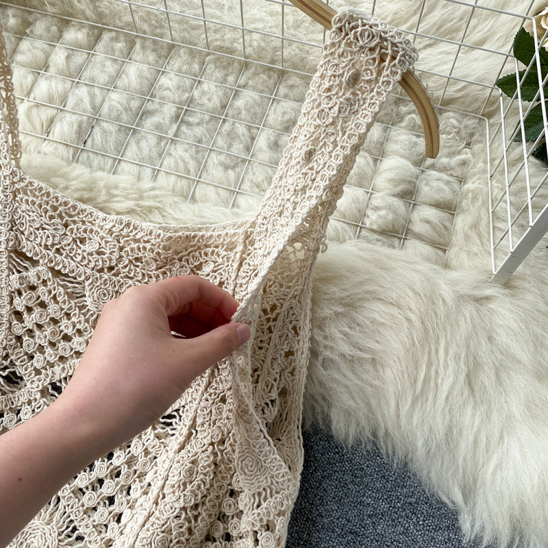 Square Collar Vest Short Top High Waist Sheath Hollow Design Sense Bell-bottom Pants Two-piece Set