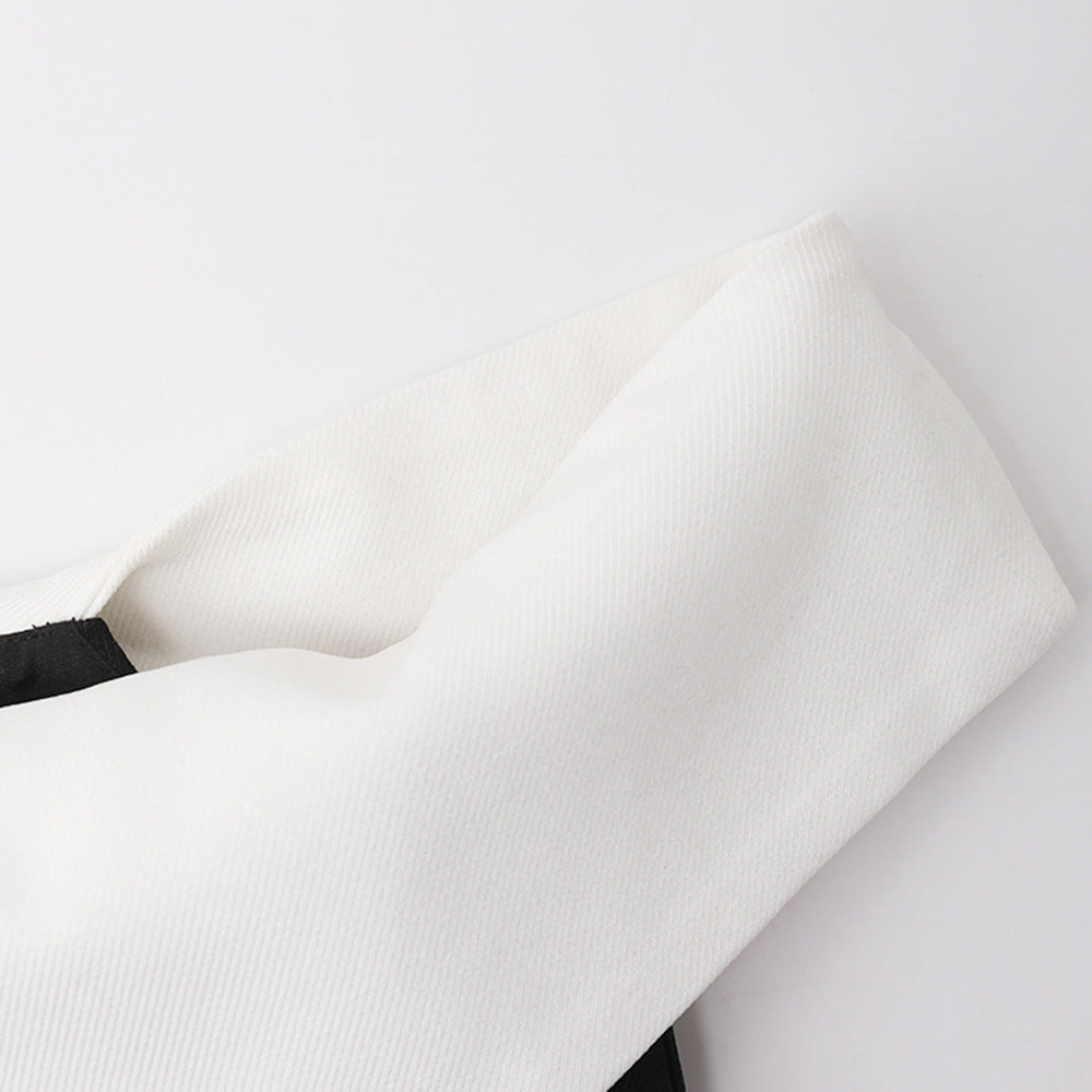 Summer New Elegant Shoulder Color Contrast Patchwork Dress